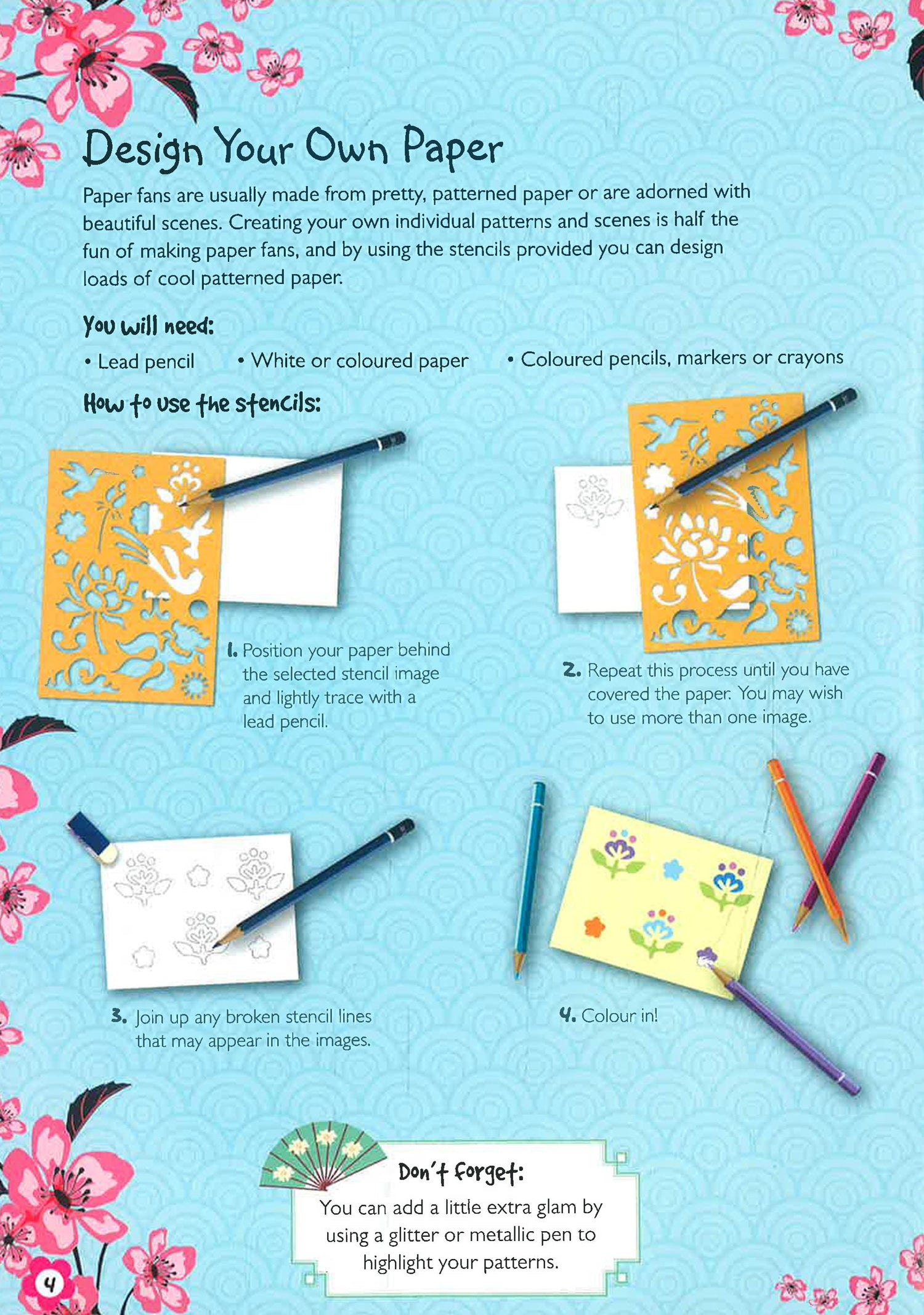 Make your very own Paper Fans and Paper Lanterns with these two packs with easy-to-follow instructions. Each contains a 16-page instruction book jam-packed with ideas and simple instructions. Also include 6 sheets of patterned paper, 12 craft sticks for the fans, gold foil paper for the lanterns and more than 30 stencils. Great for decorating rooms.
