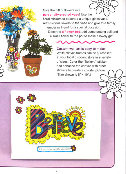 Your kids, ages 8 and up, will enjoy coloring stickers and making inspirational crafts and gifts for friends and family. Just color the stickers with crayons, colored pencils, markers, or gel pens and personalize notepads, journals, gift bags, picture frames, vases, candy dishes, greeting cards, room accessories, and more! Pre-cut, self-adhesive stickers make creating gifts easy and fun. Includes dozens of stickers and 12 additional pages filled with crafting and gift ideas. Photographs of project ideas are included to show creative ways to use the stickers and inspire young artists! Make Your Own Sticker Crafts, Gifts, and More is a fun-filled way for your kids to share their faith and personalize their world!