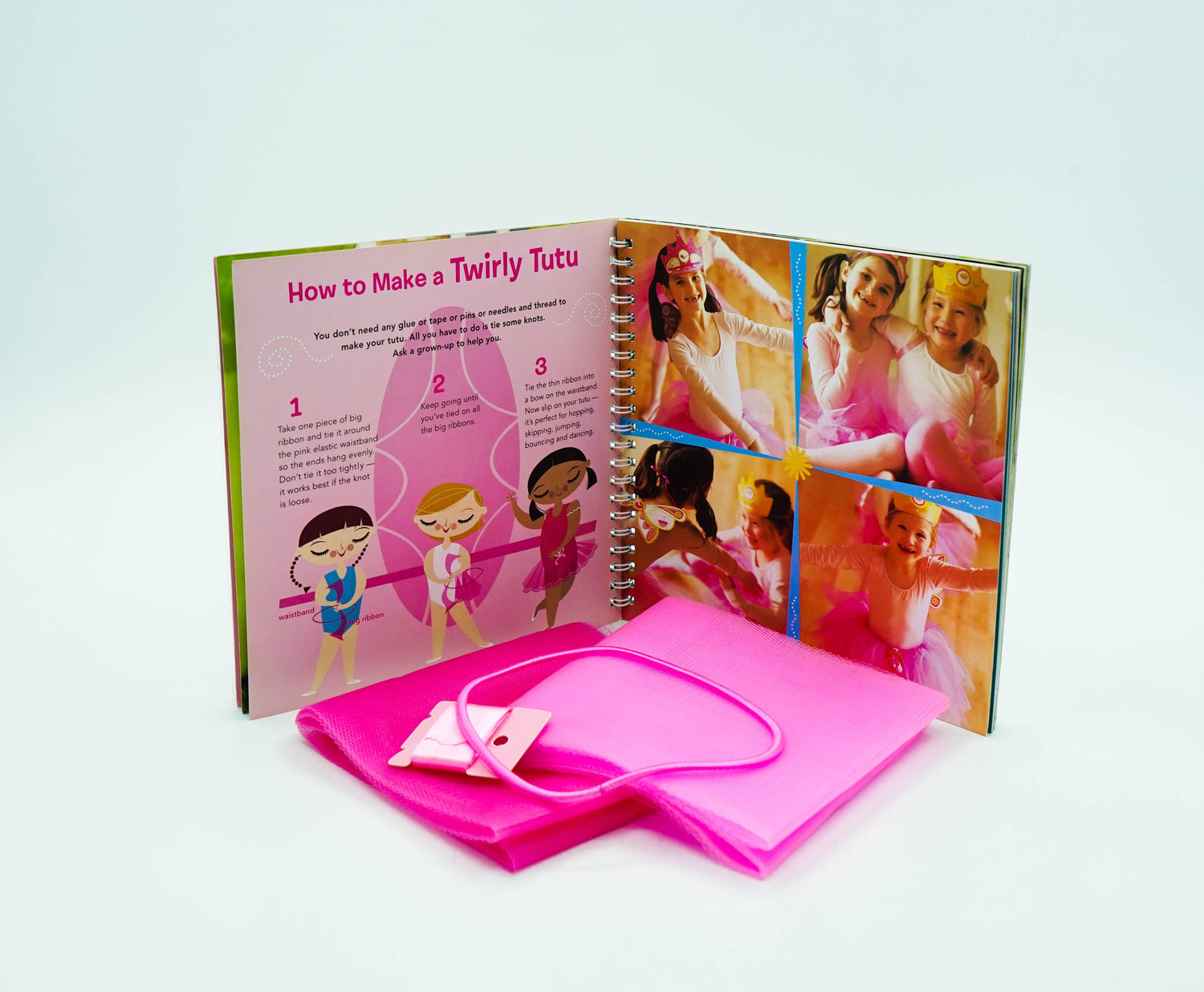 Every little girl dreams of becoming a beautiful ballerina, princess or fairy and this book helps children make a quick and easy costume. This pack contains strips of pink tulle (two shades of pink), a strip of pink satin ribbon, and a pink elastic waistband. Plus the book contains push-out tiaras, shoe toppers and wings.