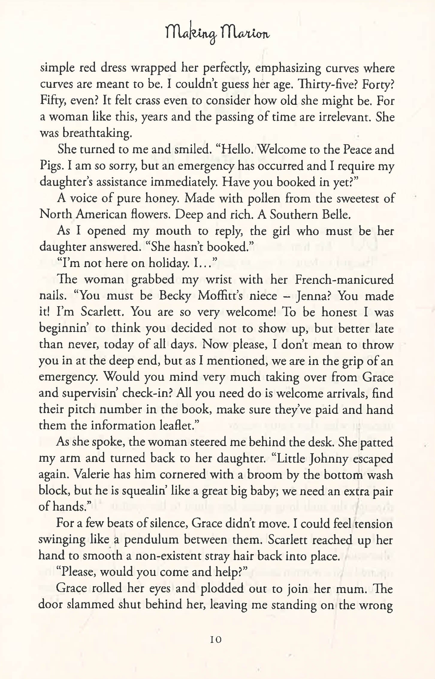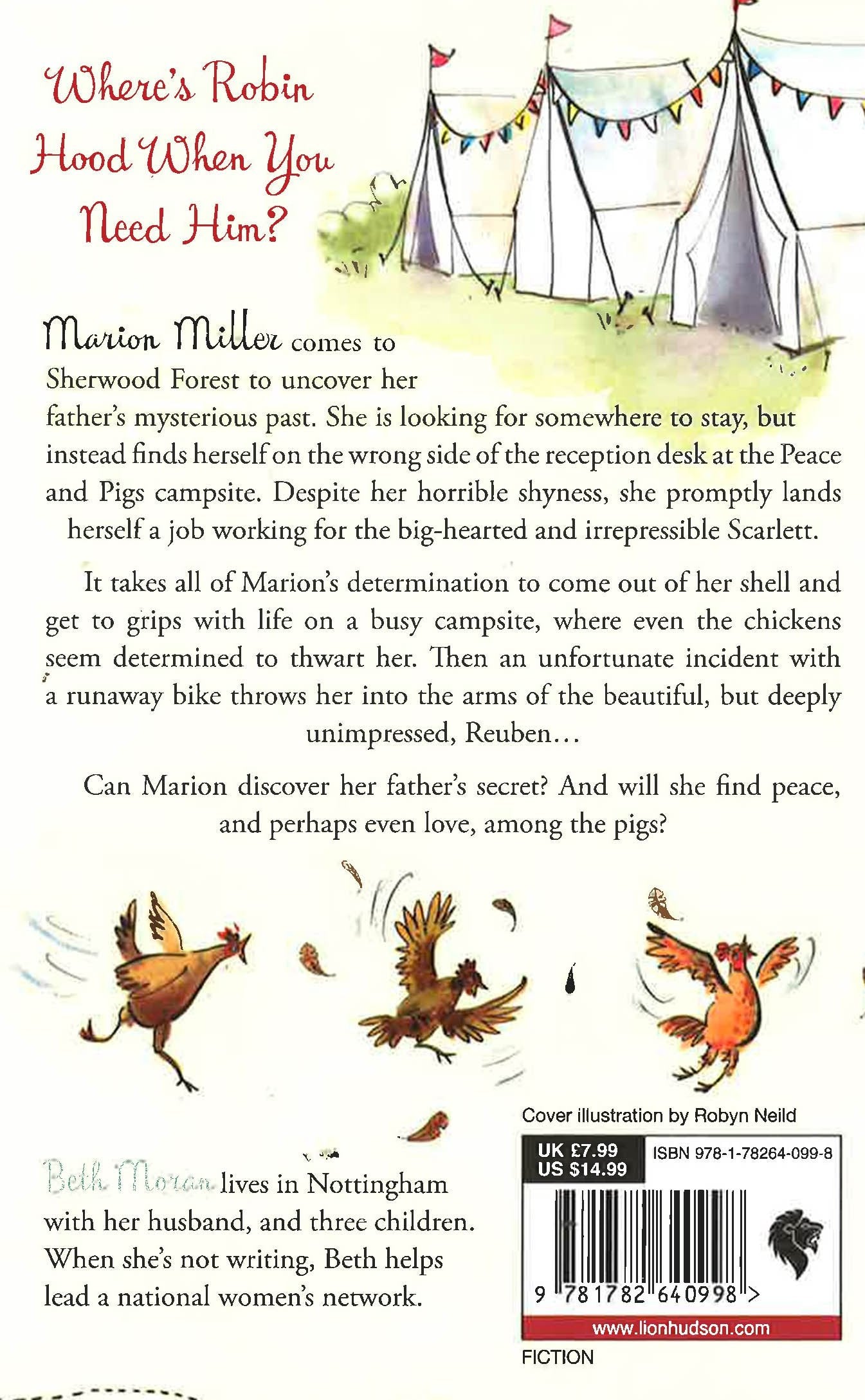 She had been looking for somewhere to stay, but instead Marion Miller finds herself on the wrong side of the reception desk at the Peace and Pigs campsite and, despite her horrible shyness, promptly lands herself a job. Marion came to Sherwood Forest to discover her father's mysterious past, but all she has to go on is a picture of her father dressed up, it would seem, as Robin Hood. It takes Marion all she's got to come out of her shell and get to grips with life on a busy campsite, where the chickens seem determined to thwart her and an unfortunate incident with a runaway bike throws her into the arms of the beautiful, but deeply unimpressed, Reuben. Marion's would-be boyfriend Jake, and Reuben's stunning fiancee Erica, conspire to leave little room for Marion to daydream about the twinkling eyes of her rescuer, nevertheless: Will Marion ever find peace, and perhaps even love, among the pigs?