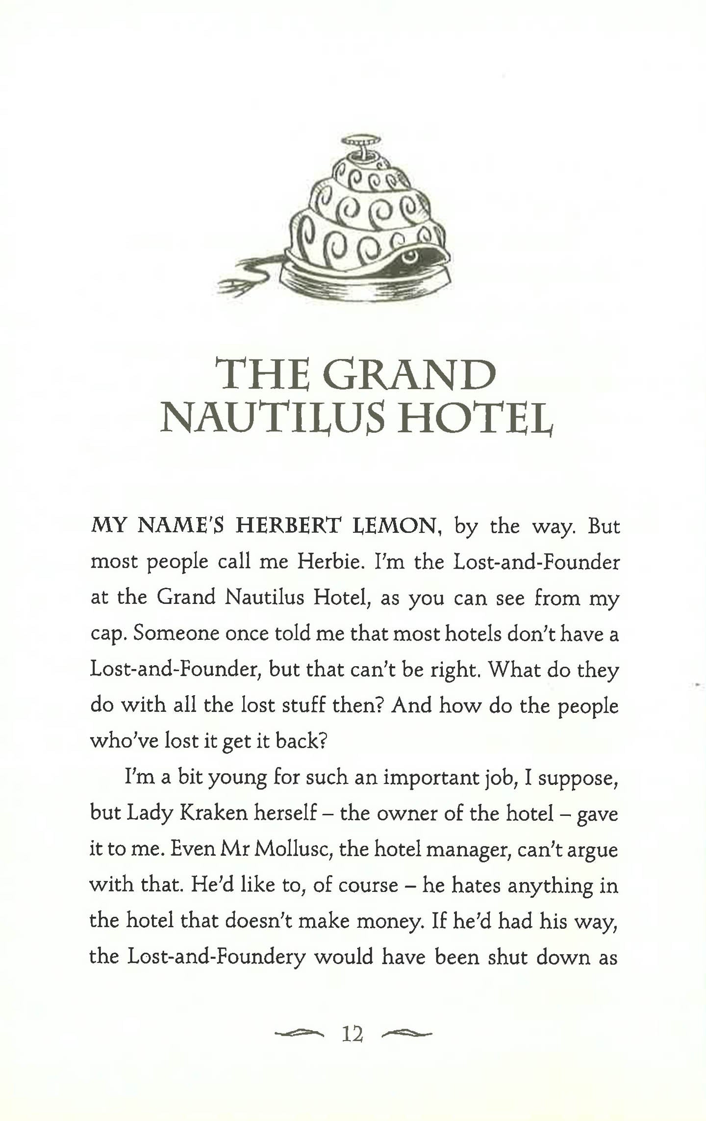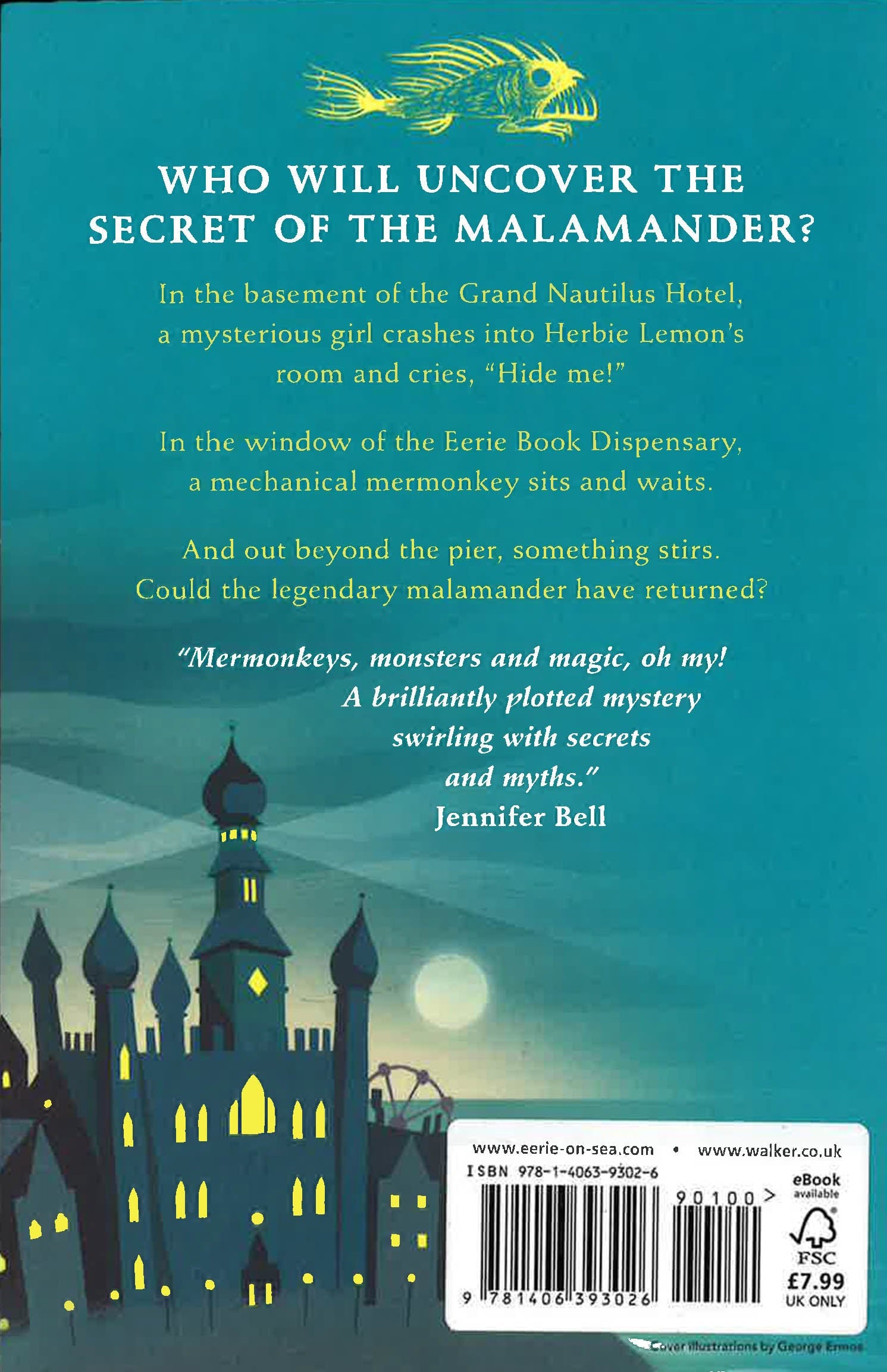 Herbert Lemon, Lost-and-Founder at the Grand Nautilus Hotel, knows that returning lost things to their rightful owners is not easy - especially when the lost thing is not a thing at all, but a girl. No one knows what happened to Violet Parma's parents twelve years ago, and when she engages Herbie to help her find them, the pair discover that their disappearance might have something to do with the legendary sea-monster, the malamander. Eerie-on-Sea has always been a mysteriously chilling place, where strange stories seem to wash up. And it just got stranger.