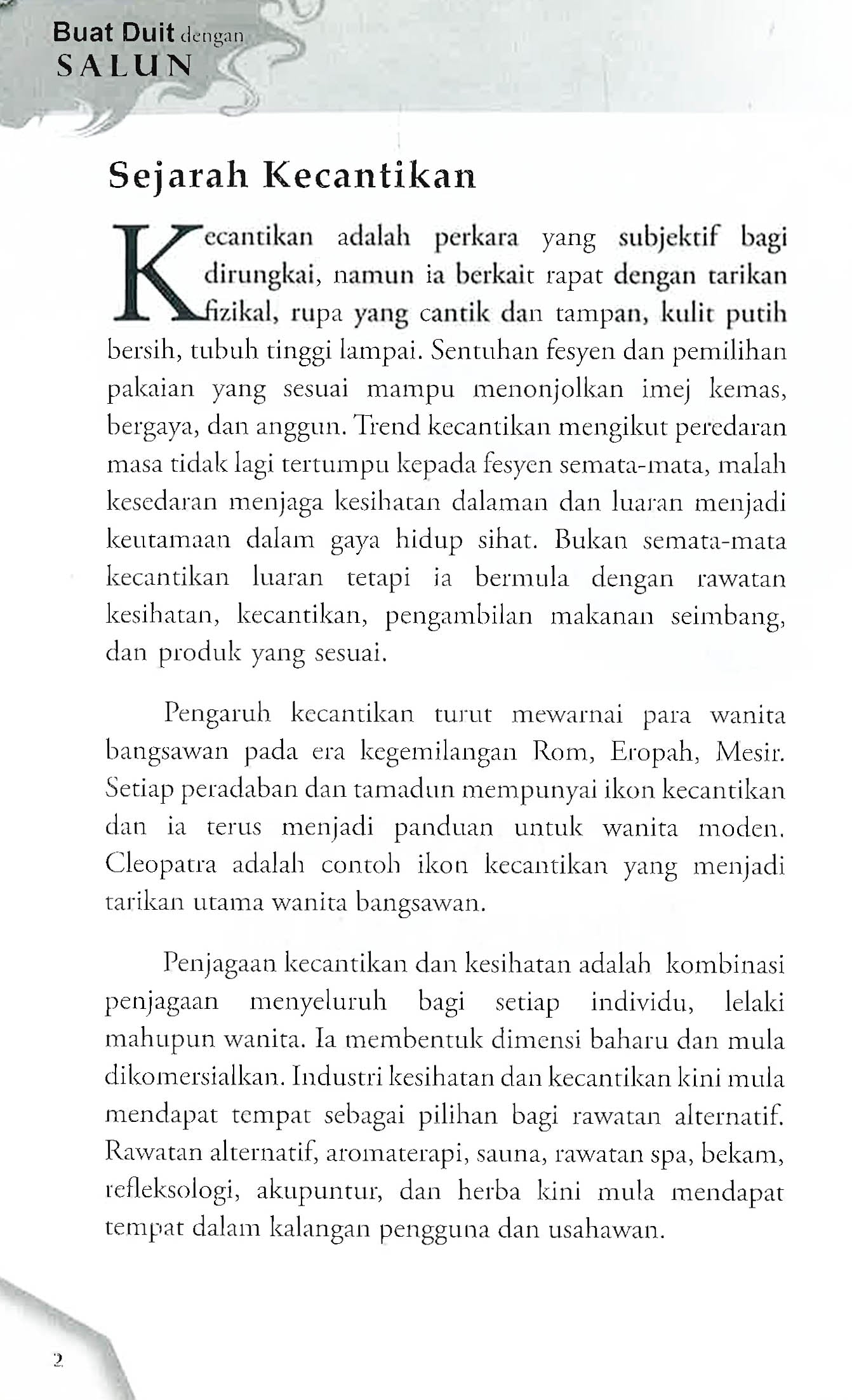 menyeluruh bagi wanita mahupun lelaki. Bisnes Salun adalah bisnes yang