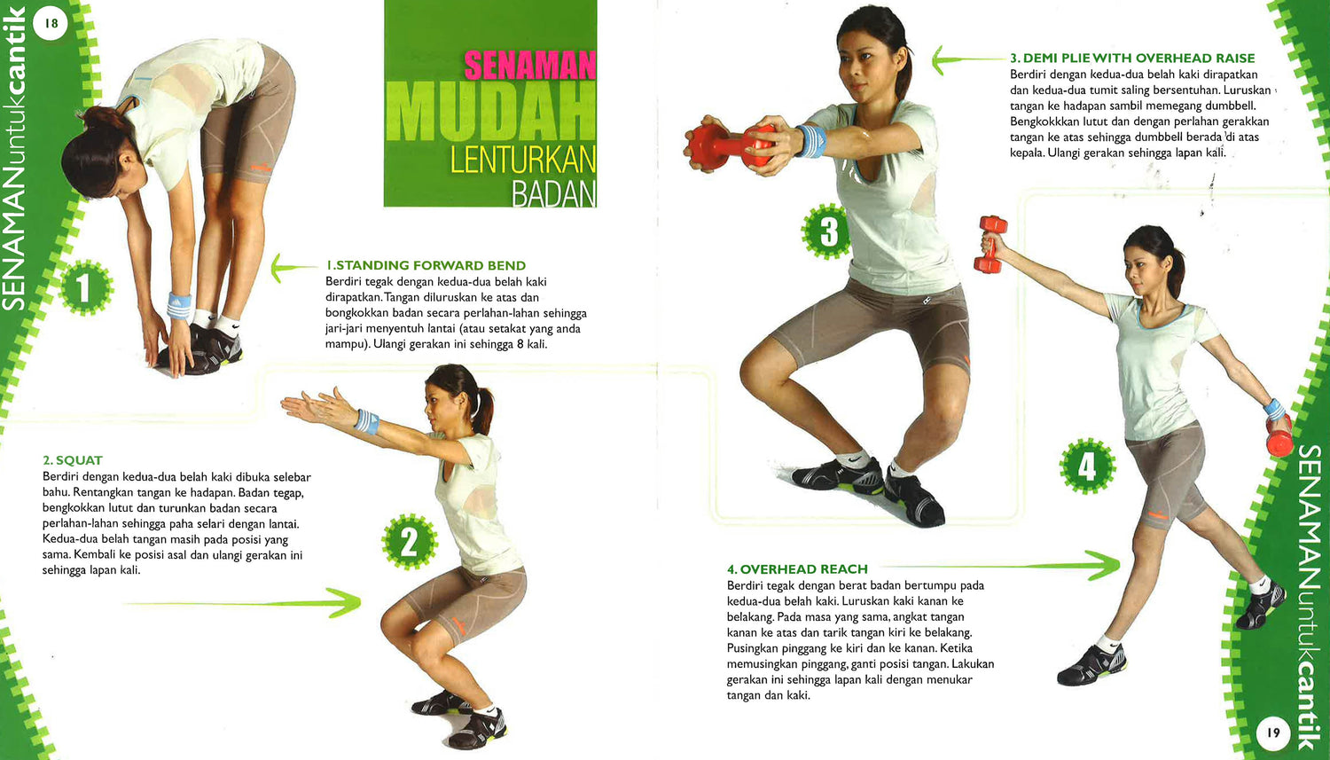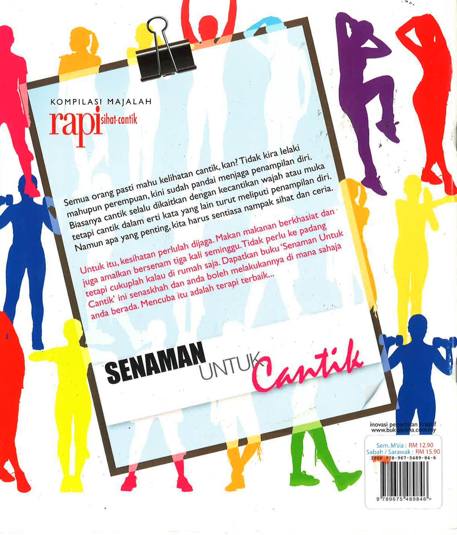 Semua orang pasti mahu kelihatan cantik, kan? Tidak kira lelaki mahupun perempuan, kini sudah pandai menjaga penampilan diri. Biasanya cantik selalu dikaitkan dengan kecantikan wajah atau muka tetapi cantik dalam erti kata yang lain turut meliputi penampilan diri. Namun apa yang penting, kita harus sentiasa nampak sihat dan ceria. Untuk itu, kesihatan perlulah dijaga. Makan makanan berkhasiat dan juga amalkan bersenam tiga kali seminggu. Tidak perlu ke padang tetapi cukuplah kalau di rumah saja. Dapatkan buku 'Senaman Untuk Cantik' ini senaskhah dan anda boleh melakukannya di mana sahaja anda berada. Mencuba itu adalah terapi terbaik.