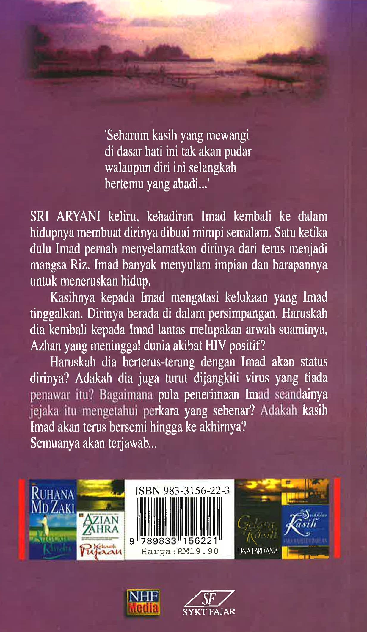SRI ARYANI keliru, kehadiran Imad kembali ke dalam hidupnya membuat dirinya dibuai mimpi semalam. Satu ketika dulu Imad pernah menyelamatkan dirinya dari terus menjadi mangsa Riz. Imad banyak menyulam impian dan harapannya untuk meneruskan hidup. Kasihnya kepada Imad mengatasi kelukaan yang Imad tinggalkan. Dirinya berada di dalam persimpangan. Haruskah dia kembali kepada Imad lantas melupakan arwah suaminya, Azhan yang meninggal dunia akibat HIV positif? Haruskah dia berterus-terang dengan Imad akan status dirinya? Adakah dia juga turut dijangkiti virus yang tiada penawar itu? Bagaimana pula penerimaan Imad seandainya jejaka itu mengetahui perkara yang sebenar? Adakah kasih Imad akan terus bersemi hingga ke akhirnya? Semuanya akan terjawab.
