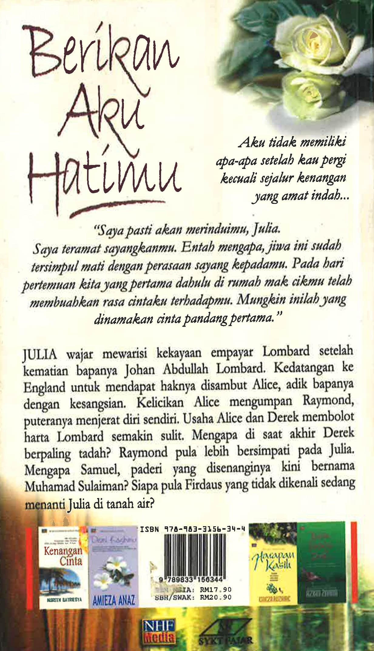 JULIA wajar mewarisi kekayaan empayar Lombard setelah kematian bapanya Johan Abdullah Lombard. Kedatangan ke England untuk mendapat haknya disambut Alice, adik bapanya dengan kesangsian. Kelicikan Alice mengumpan Raymond, puteranya menjerat diri sendiri. Usaha Alice dan Derek membolot harta Lombard semakin sulit. Mengapa di saat akhir Derek berpaling tadah? Raymond pula lebih bersimpati pada Julia. Mengapa Samuel, paderi yang disenanginya kini bernama Muhamad Sulaiman? Siapa pula Firdaus yang tidak dikenali sedang menanti Julia di tanah air?