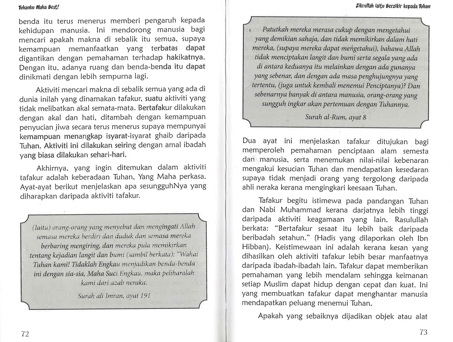 Remaja membesar dalam suasana beribadah kepada Tuhan. Ramai tokoh Islam yang telah menjadi Muslim contoh sejak dari remaja lagi, bahkan sejak zaman kanak-kanak mereka. Mereka adalah Ali bin Abi Thalib, Abdullah bin Mas’ud, Fatimah Az-Zahra, Mush’aib bin Umair dan lain-lain. Anggapan mengatakan remaja berada jauh daripada Tuhan dan tidak melakukan ibadah adalah anggapan yang tidak tepat. Buku ini banyak menerangkan kepada remaja bagaimana cara ingin mendekati Tuhan.