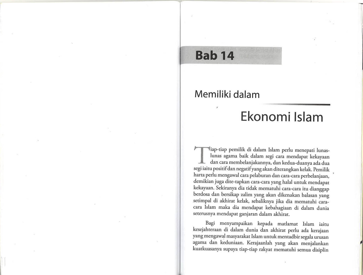 Islam menggariskan tatacara hidup manusia bersesuaian dengan tarafnya sebagai Ad-Deen. Buku ini menerangkan isu-isu berkaitan pengurusan harta, seperti jual-beli, riba, wakaf, pemilikan harta dsb.