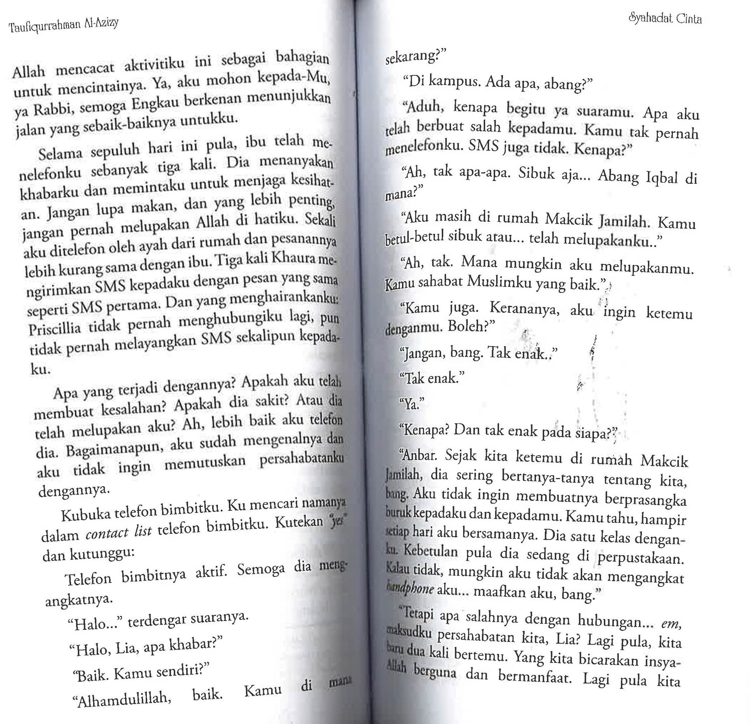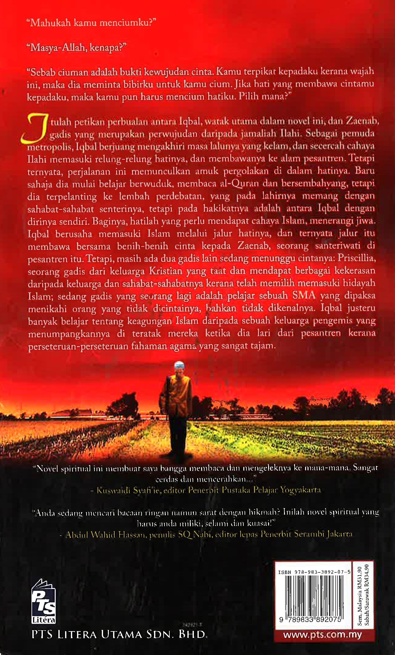 Itulah petikan percakapan antara iqbal-tokoh utama dalam novel ini-dan Zaenab-gadis yang merupakan perwujudan dari sifat jamaliah dan ilahi.Sebagai pemuda metropolis, Iqbal berjuang mengakhiri masa lalunya yang kelam, dan secercah cahaya ilahi masuk melalui relung-relung hatinya dan membawanya masuk ke alam pesantren. Tetapi ternyata, perjalanan ini memunculkan amuk pergolakan di dalam hatinya. Baru saja ia mulai belajar berwudlu, membaca al-Qur'an dan bersembahyang, tetapi ia terpelanting ke lembah perdebatan, yang pada lahirnya memang sahabat-sahabat santri , tetapi pada hakikatnya adalah antara Iqbal dengan dirinya sendiri. Baginya, hatilah yang perlu mendapatkan cahaya Islam, menerangi jiwa. Iqbal berusaha memasuki Islam melalui jalur hati ini, dan ternyata jalur ini membawa serta benih-benih cinta kepada Zaenab, santriwati. Tetapi, ada dua gadis lain yang sedang menunggu cintanya : Priscillia, seorang gadis dari keluarga Kristen yang taat dan mendapatkan berbagai kekerasan dari keluarga dan sahabat-sahabatnya karena memilih memasuki hidayah Islam; sedang gadis yang satu lagi adalah siswi sebuah SMA yang dipaksa menikah dengan orang yang tidak dicintainya, bahkan tidak dikenalnya. Iqbal justru banyak belajar keagungan Islam dari sebuah keluarga pengemis yang menampungnya ketika ia lari dari pesantren karena perseteruan paham-paham religius yang sangat tajam.