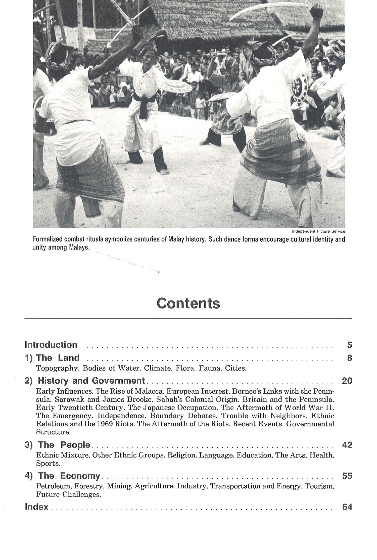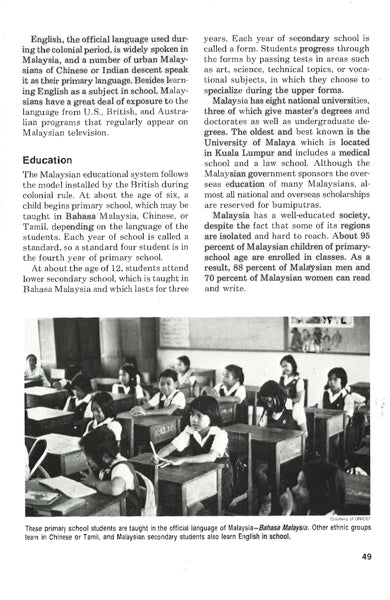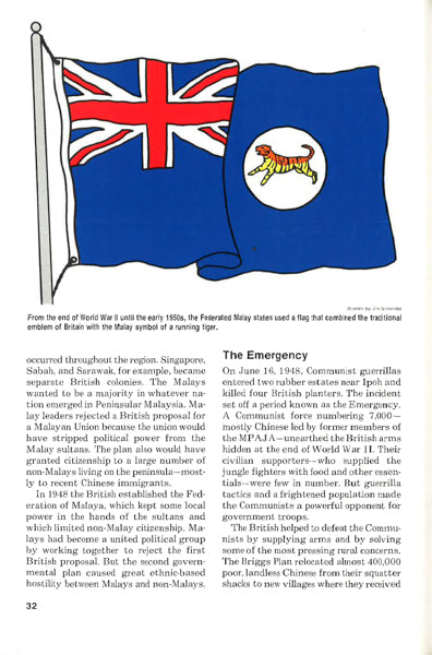 Malaysia's topography, history, society, economy, and government are concisely described, augmented by photographs, maps, charts, and captions.