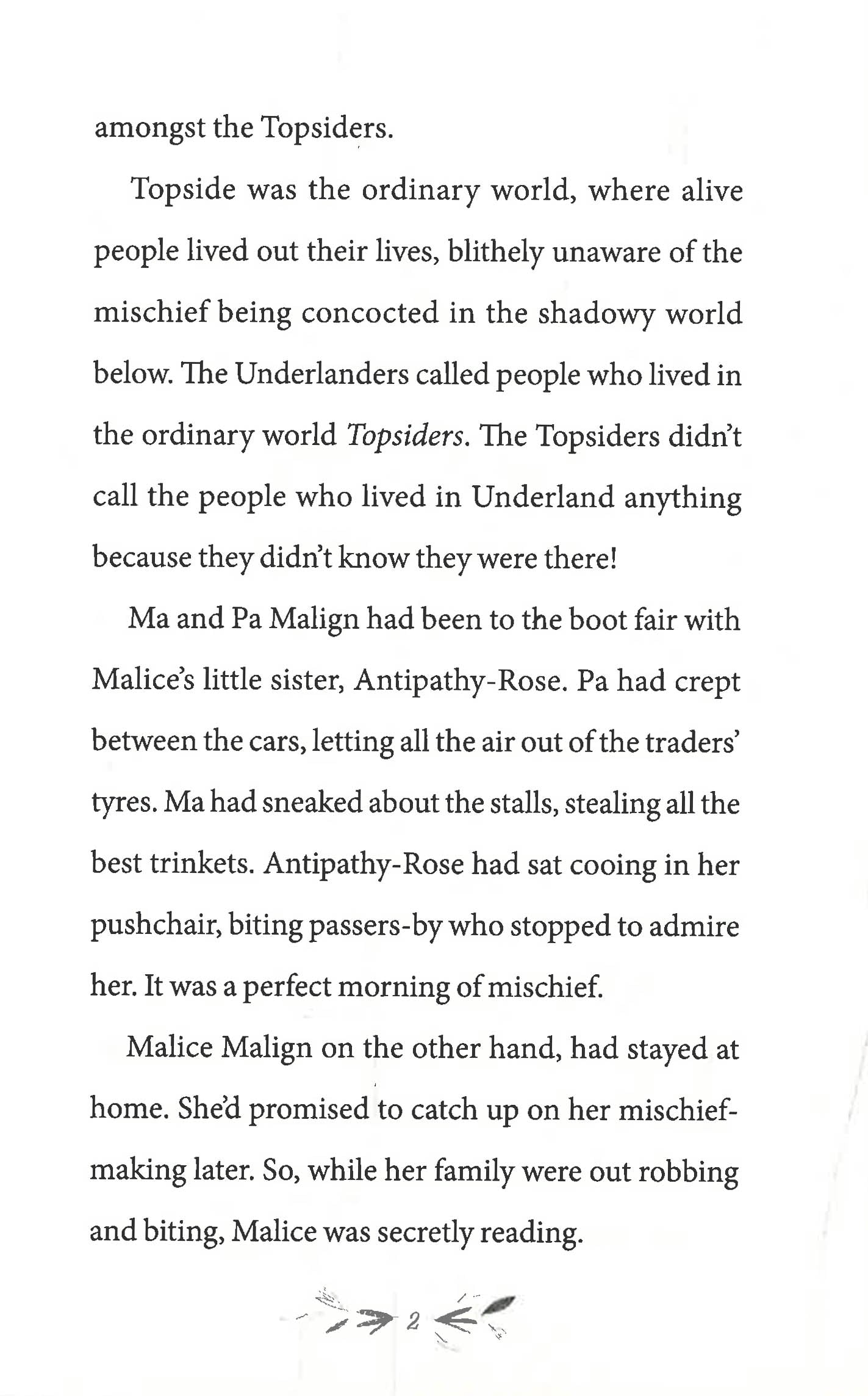 A gorgeously gothic new series. STARFELL meets THE ADDAMS FAMILY. Malice is from Underland, land of sorcery and spooks. But, her family live in Topside and mischief is their business. The business of mischief is a very serious matter!