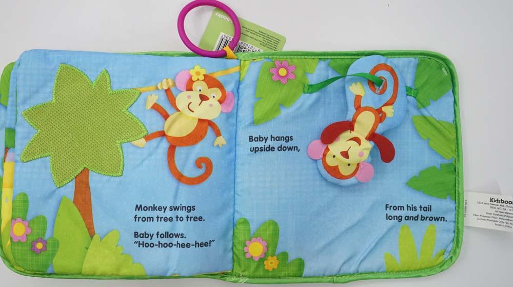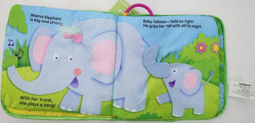 Children will love to follow the animals and their cute babies throughout this adorable cloth book with playful rhymes! Interacting with soft pages helps develop fine motor skills, and crinkle sounds and peek-a-boo flaps throughout this Deluxe Cloth Book encourage learning. The attached stroller ring helps you take this delightful and entertaining storybook with you wherever you go!