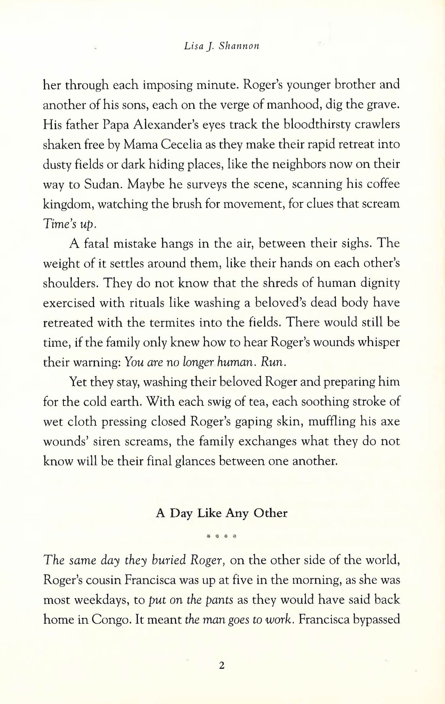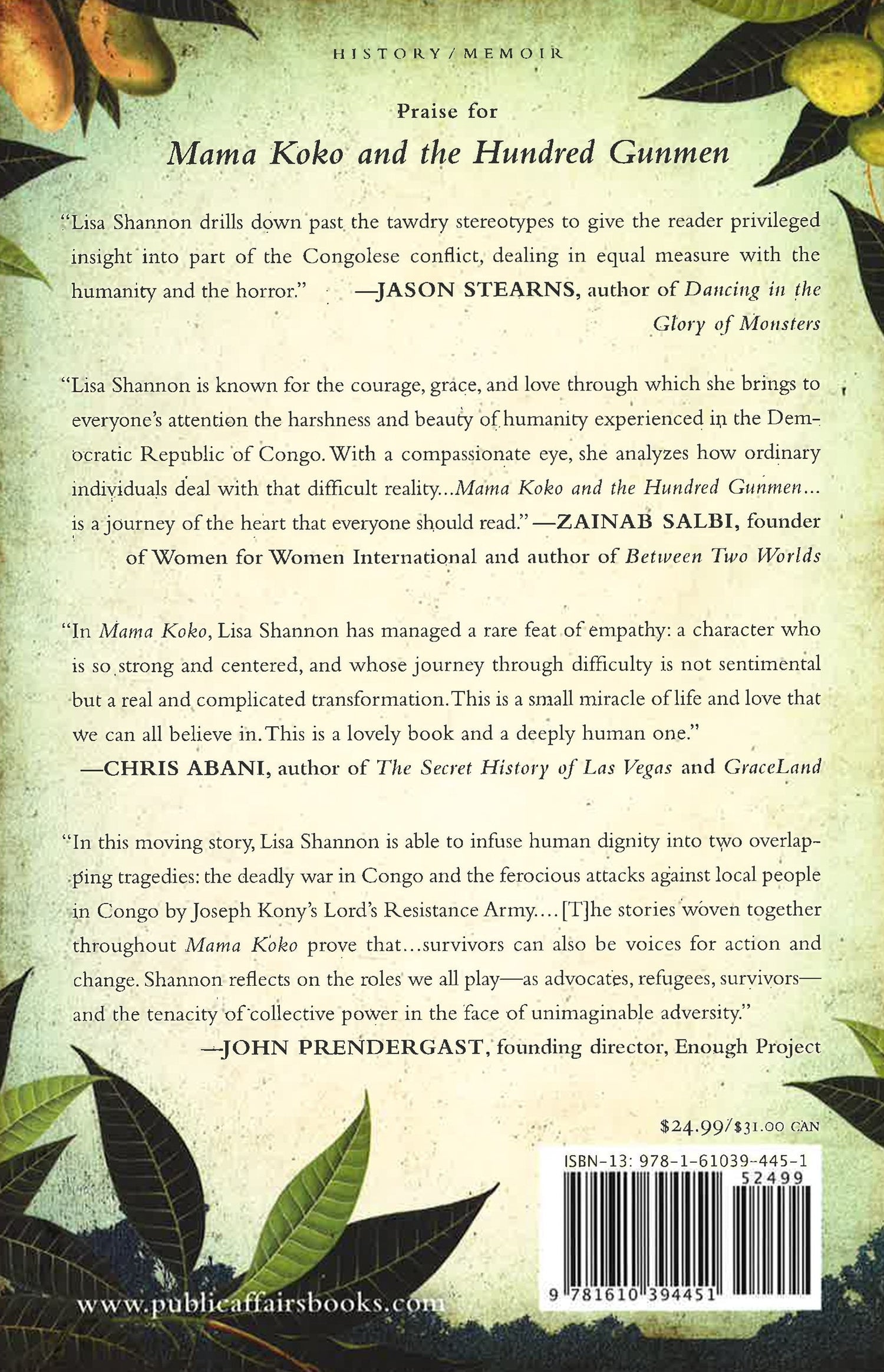 Driven by her family's devastating losses, Congolese expatriate Francisca Thelin embarks, with human rights activist Lisa J. Shannon, on a perilous journey back to her beloved homeland, now under the shadow of one of Africa's most feared militias,Joseph Kony's Lord's Resistance Army. With gunmen camped at the edge of town, Francisca is forced to face a paralyzing clash between her life in America and her family's rapidly evaporating world,and the reality that their rush to her family's aid may backfire. Mama Koko and the Hundred Gunmen weaves Francisca's journey with stories of the family's harrowing encounters with gunmen and tales from their past to create a vivid, illuminating portrait of a place and its people. We hear of Mama Koko's early life as a gap-toothed beauty plotting to escape her inevitable fate of wife and motherhood of Papa Alexander's empire of wives, each of whom he married because she cooked and cleaned and made good coffee and of Francisca's idyllic childhood, when she ran barefoot through the family's coffee plantation gorging herself on mangoes and fish that were the size of small children."Offering compelling testimony to the strength of the human spirit and the beauty of human connection in the darkest of times, Mama Koko and the Hundred Gunmen also explores what it means and requires to truly make a difference in an unjust and often violent world.