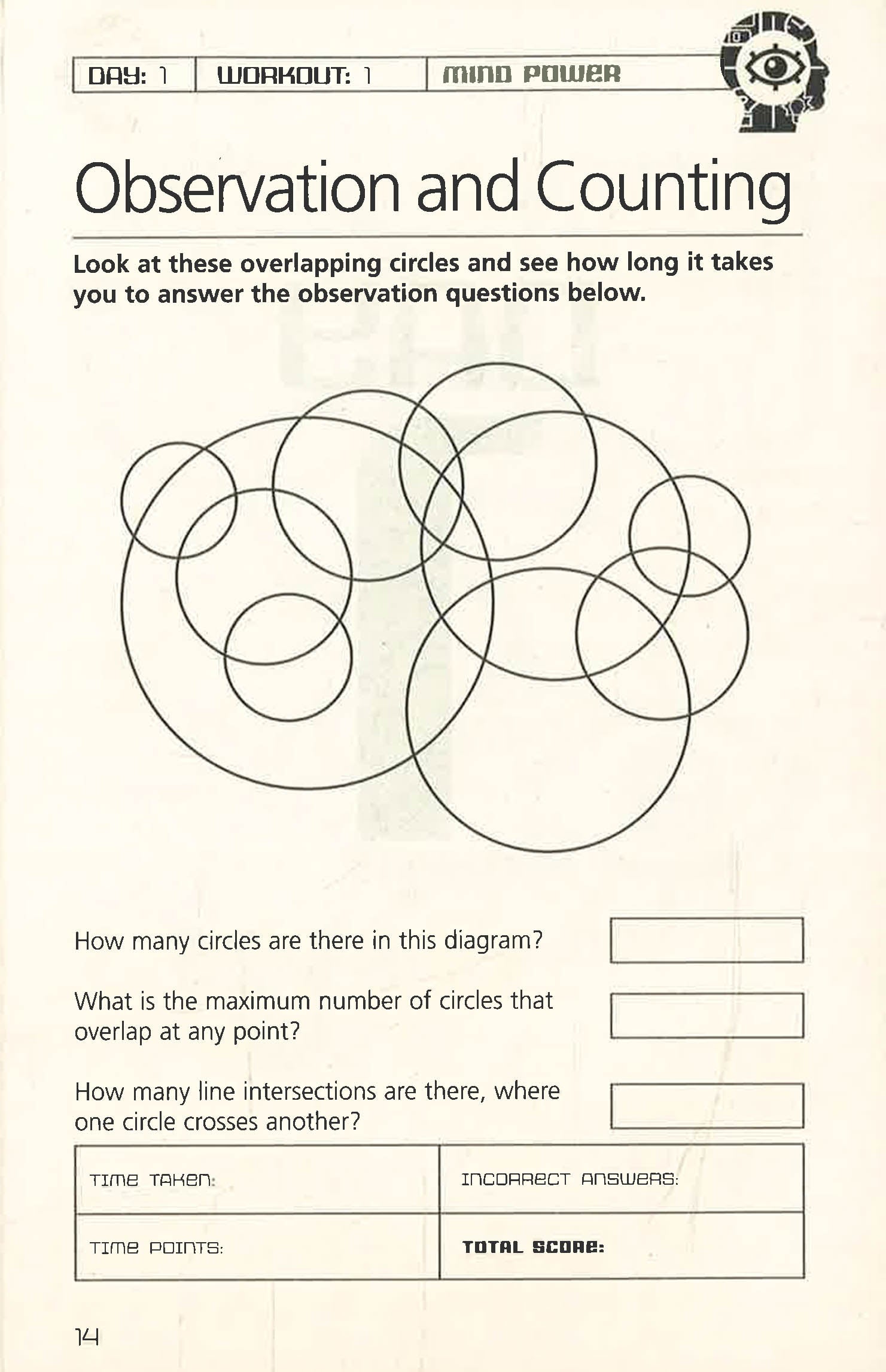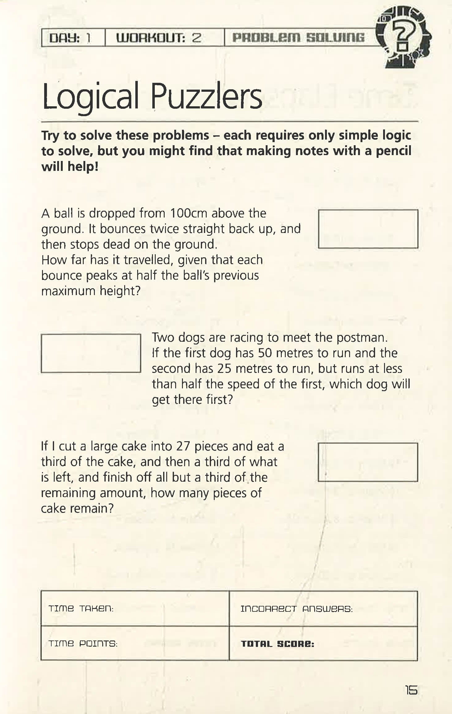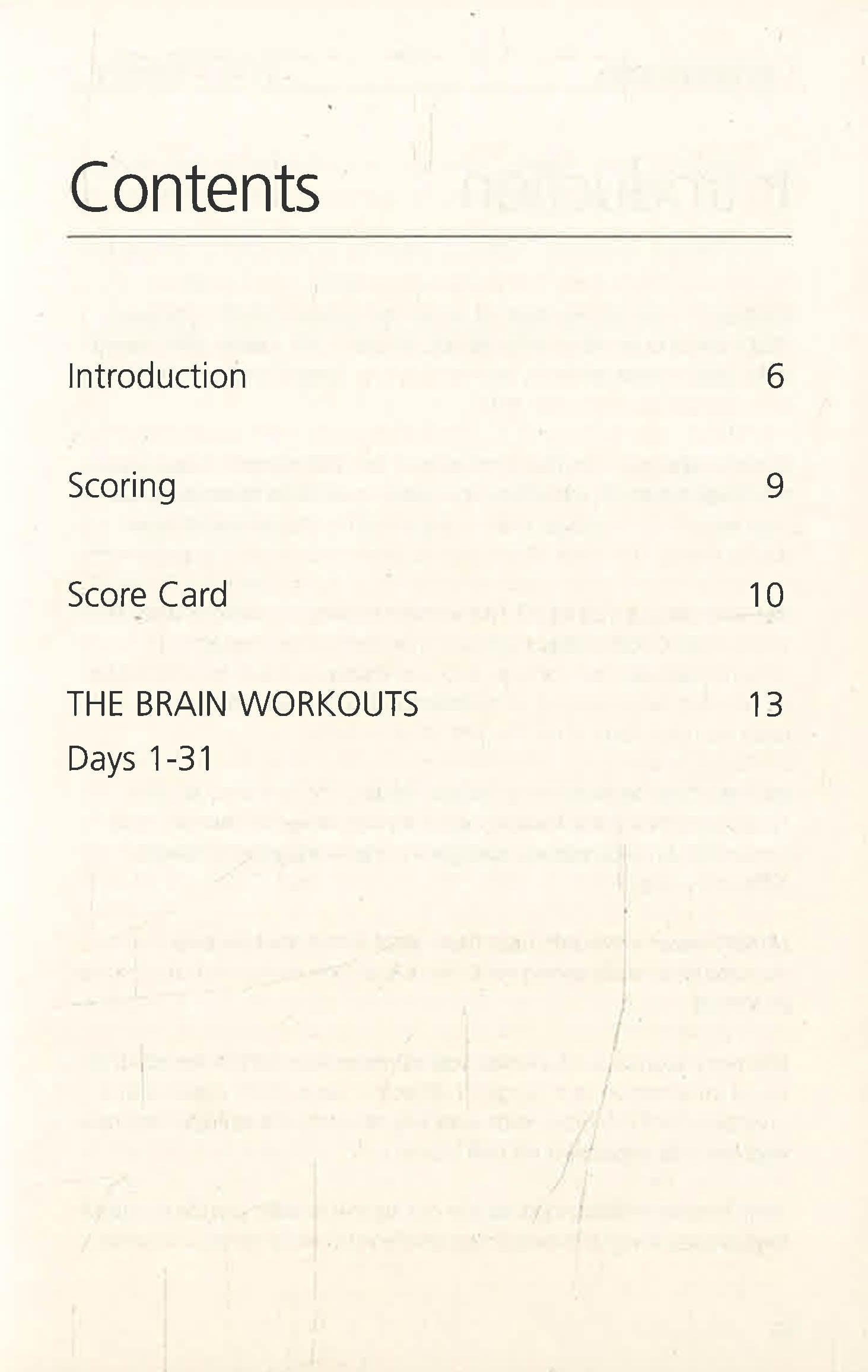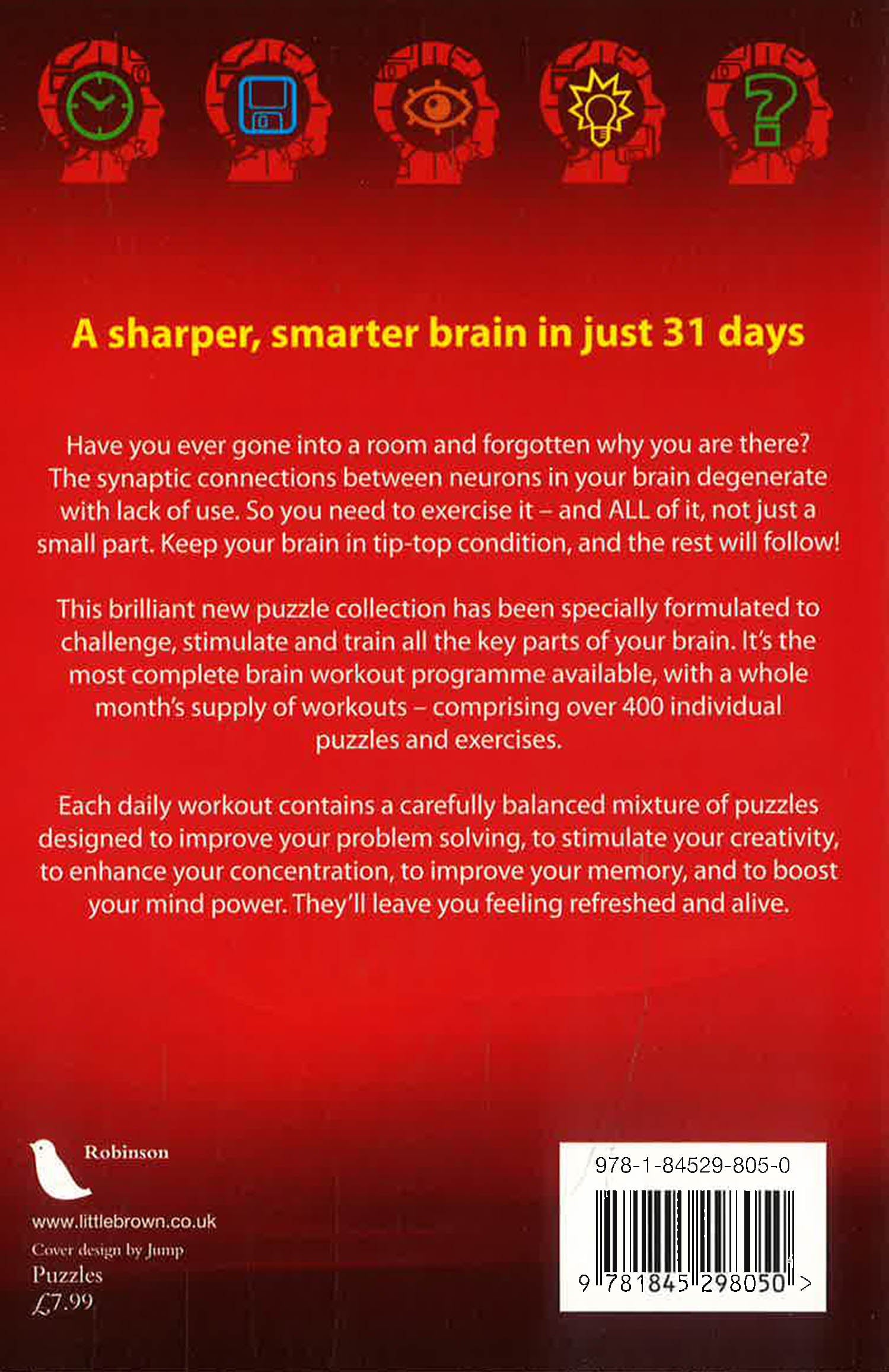 This collection of over 400 puzzles has been specially formulated to challenge, stimulate and train all the key parts of your brain. It includes a month's supply of workouts, with each daily workout balanced between problem solving, creativity, concentration and memory. The book includes the solutions to the puzzles.