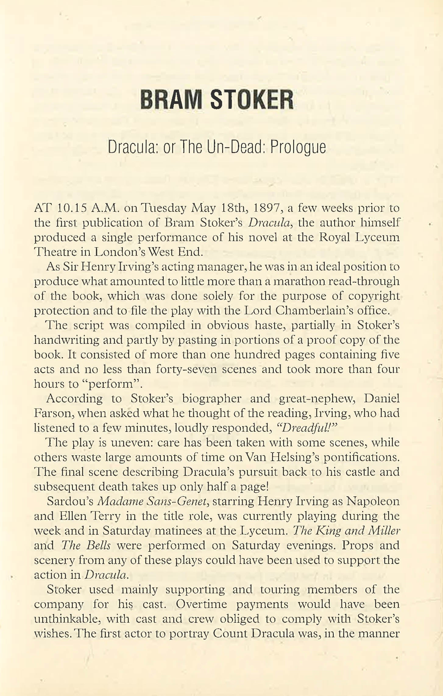 This modern reissue of The Mammoth Book Of Dracula includes 33 exciting stories in which Dracula visits the Cote d'Azur, the wilds of Oregon, Los Angeles, and the ruins of postapocalyptic New Jersey. This new edition also includes Bram Stoker's prologue and an introduction by Stoker's great-nephew, Daniel Farson.