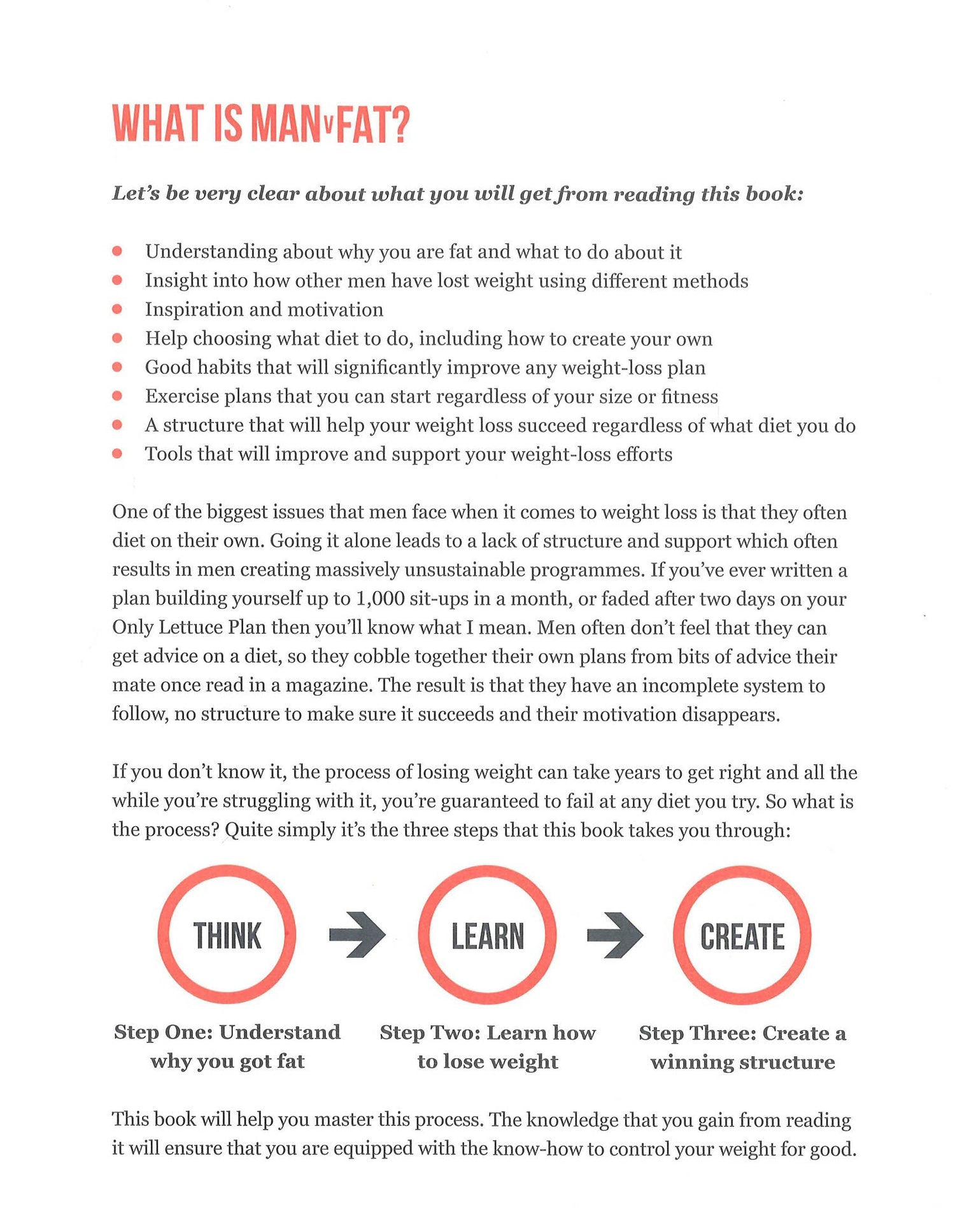 Man v Fat is a practical and supportive resource for men, written by a normal bloke who just wanted to lose some weight. One day Andrew Shanahan took a guttie to text to a mate. But once he had taken the photo, he couldn't stop looking at it. He realized how unhappy he was about his body and resolved to change it. However he soon learned that the dieting industry had turned its back on men. Men were expected to get fit, tone up and turn fat into a six-pack in six weeks. There was nothing for men who simply wanted to lose their beer belly, play football again and feel more confident. So Andrew decided to do something about this. In Man v Fat, Andrew Shanahan will give you everything you need to know in order to lose weight, breaking it down into three essential components: Stage 1: Understand why you got fat Stage 2: Learn how to lose weight Stage 3: Create a winning structure Man v Fat is not a diet book or a commercial diet plan. It will explain (and myth-bust) the various diets available, so you can choose the one that will work best for you - or even create your own. It will help you to supercharge your motivation, set specific goals and teach you how to track and review them, identify threats and create a support network, and of course troubleshoot common hurdles. There are plans to get you walking, running or cycling (optional activity) or make the most of obligatory activity. Plus a perfect week plan and perfect month plan to get you started. In the battle of man against fat, this book is your ultimate weapon.