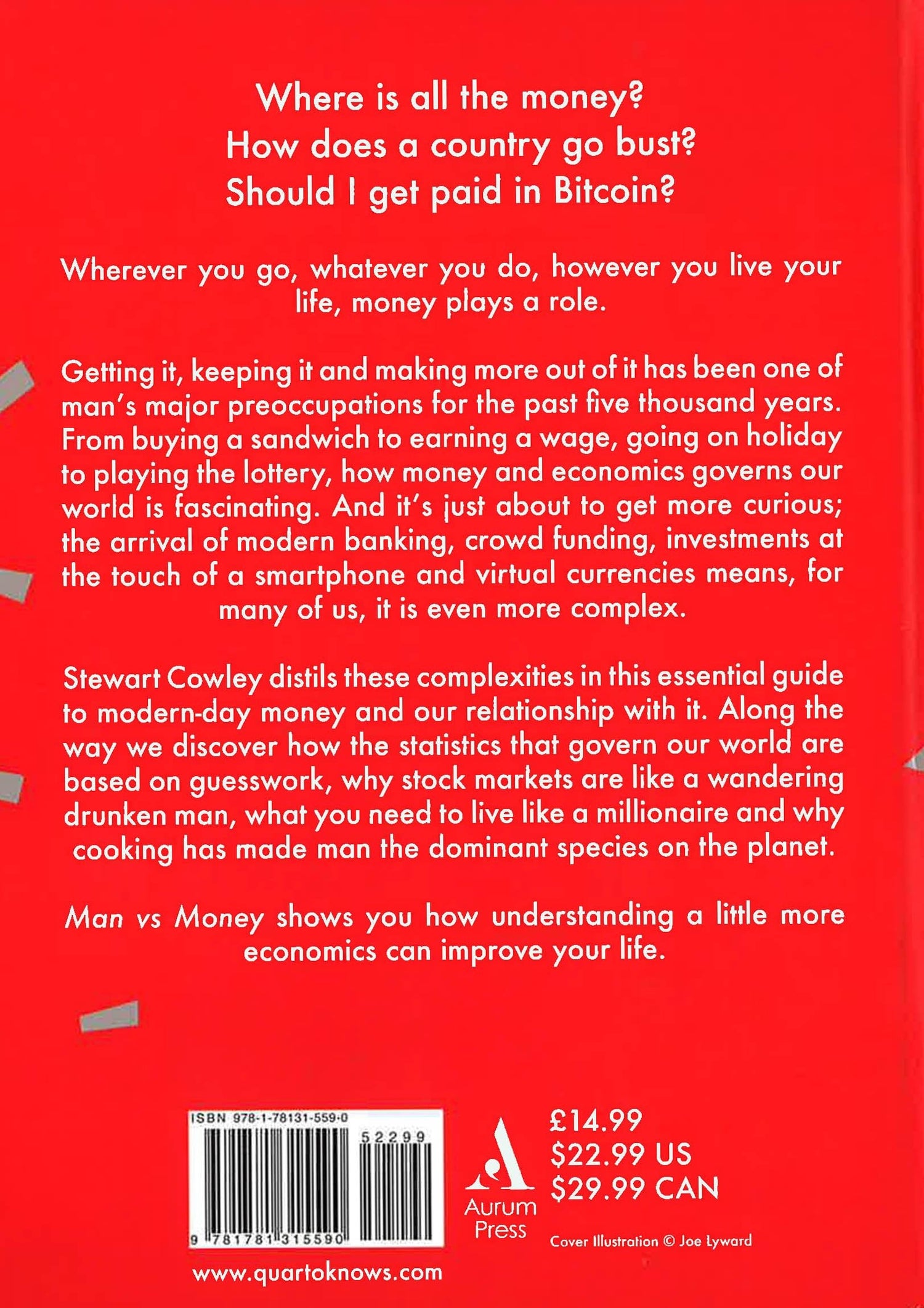 Where is all the money? How does a country go bust? Should I get paid in Bitcoin?Wherever you go, whatever you do, however you live your life, money plays a role.Getting it, keeping it and making more out of it has been one of man?s major preoccupations for the past five thousand years. From buying a sandwich to earning a wage, going on holiday to playing the lottery, how money and economics governs our world is fascinating. And it?s just about to get more curious; the arrival of modern banking, crowd funding, investments at the touch of a smartphone and virtual currencies means, for many of us, it is even more complex.Stewart Cowley distils these complexities in this essential guide to modern-day money and our relationship with it. Along the way we discover how the statistics that govern our world are based on guesswork, why stock markets are like a wandering drunken man, what you need to live like a millionaire and why cooking has made man the dominant species on the planet.Man vs Money shows you how understanding a little more economics can improve your life.