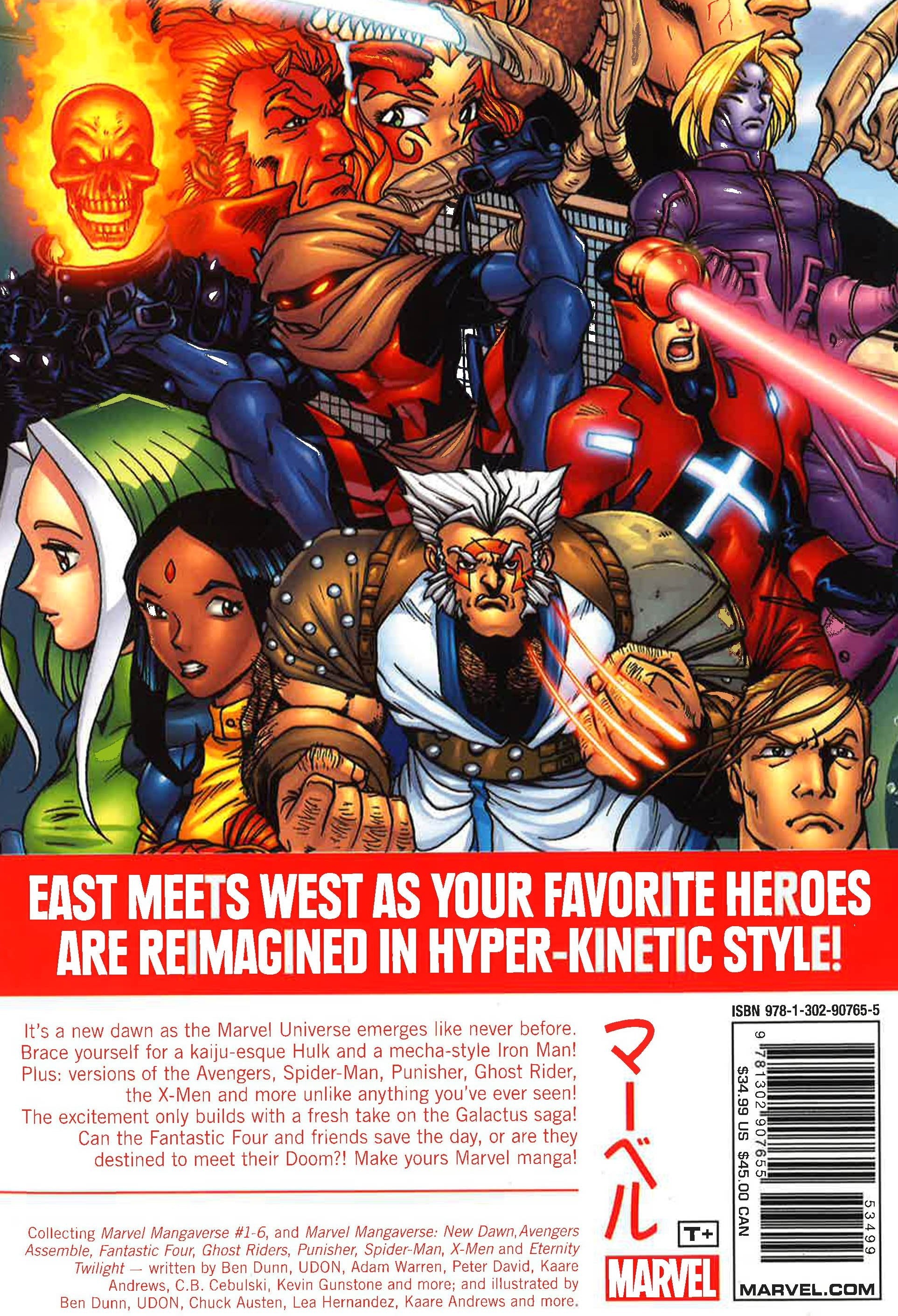 East meets West as your favorite heroes are reimagined in hyper-kinetic style by some of the most celebrated artists of the massively popular Japanese art form, manga! It's a new dawn as the Marvel Universe emerges like never before. Brace yourself for a kaiju-esque Hulk and a mecha-style Iron Man! Plus versions of the Avengers, Spider-Man, Punisher, Ghost Rider, the X-Men and more unlike anything you've ever seen before! The excitement only builds with a fresh take on the Galactus saga, manga-fied! Can the Fantastic Four and friends save the day, or are they destined to meet their Doom?! Make yours Marvel manga!