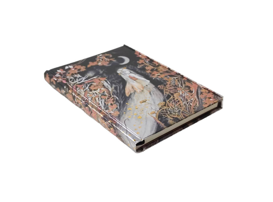 Part of a series of exciting and luxurious Flame Tree Notebooks. Combining high-quality production with magnificent fine art, the covers are printed on foil in five colours, embossed, then foil stamped. And they're powerfully practical: a pocket at the back for receipts and scraps, two bookmarks and a solid magnetic side flap. These are perfect for personal use and make a dazzling gift. This example features Manson: Fairy at Moonlight.