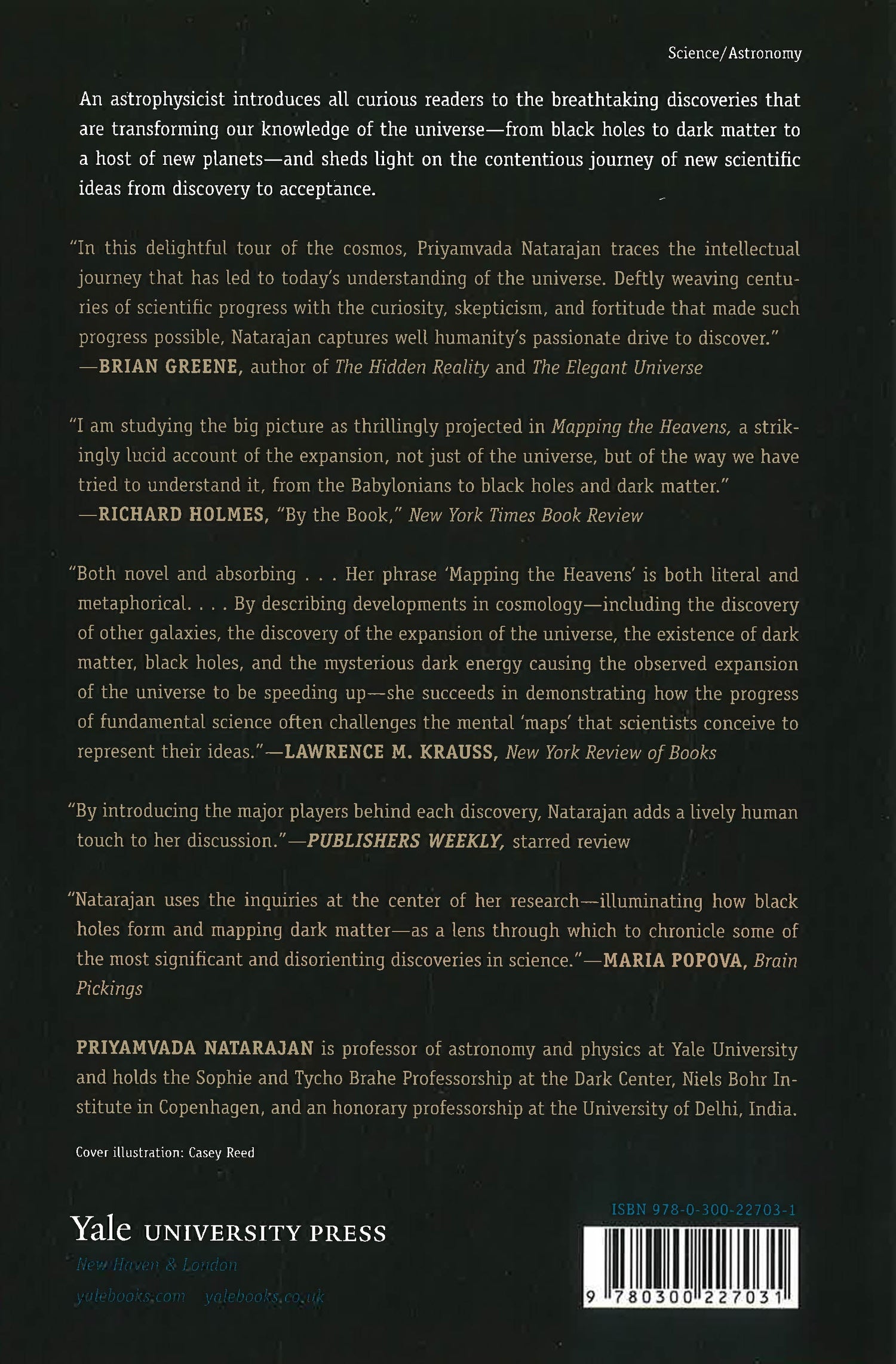 This book provides a tour of the “greatest hits” of cosmological discoveries―the ideas that reshaped our universe over the past century. The cosmos, once understood as a stagnant place, filled with the ordinary, is now a universe that is expanding at an accelerating pace, propelled by dark energy and structured by dark matter. Priyamvada Natarajan, our guide to these ideas, is someone at the forefront of the research―an astrophysicist who literally creates maps of invisible matter in the universe. She not only explains for a wide audience the science behind these essential ideas but also provides an understanding of how radical scientific theories gain acceptance.