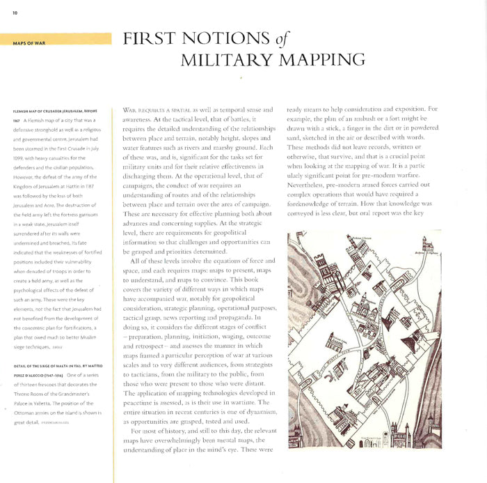 There is little documented mapping of conflict prior to the Renaissance period, but, from the 17th century onwards, military commanders and strategists began to document the wars in which they were involved and later, to use mapping to actually plan the progress of a conflict. Using contemporary maps, this sumptuous new volume covers the history of the mapping of war on land and shows the way in which maps provide a guide to the history of war. Content includes: The beginnings of military mapping up to 1600 including the impact of printing and the introduction of gunpowder The seventeenth century: The focus is on maps to illustrate war, rather than as a planning tool and the chapter considers the particular significance of maps of fortifications. The eighteenth century: The growing need for maps on a world scale reflects the spread of European power and of transoceanic conflict between Europeans. This chapter focuses in particular on the American War of Independence. The nineteenth century: Key developments included contouring and the creation of military surveying. Subjects include the Napoleonic Wars and the American Civil War The twentieth century including extended features on the First and Second World Wars including maps showing trench warfare and aerial reconnaissance. Much of the chapter focuses on the period from 1945 to the present day including special sections on the Vietnam War and the Gulf Wars.