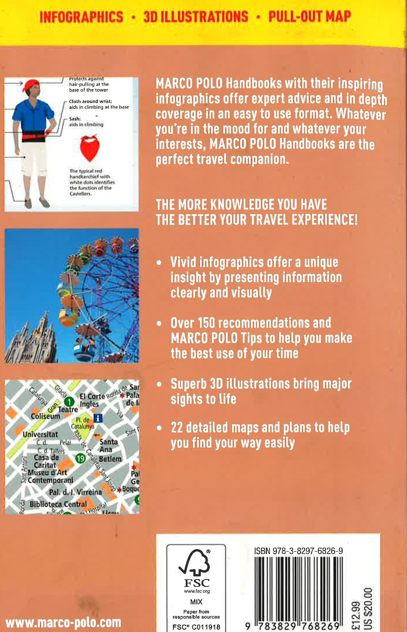 For advice you can trust, look no further than Marco Polo. The Barcelona Marco Polo Handbook offers expert advice and is aimed at travellers looking for in-depth coverage of a destination - from detailed cultural information to Insider Tips - in an easy to use format. Whatever your mood or interests, Marco Polo Handbooks are the perfect travel companion. Inside the Barcelona Marco Polo Travel Handbook: Barcelona Beauty and Pride: In recent years there's hardly a major world city that has changed as much as Barcelona. The Catalan capital looks with pride on its old and newly created districts. However, the city doesn't just entice with its architectural and cultural offerings: the coastal metropolis is also a vibrant, lively place to visit, both by day and by night. Barcelona is in - and rightly so! The Marco Polo Handbook to Barcelona leads you to amazing Modernista buildings, to chic tapas bars and trendy hangouts, and invites you to stroll along the Rambles. With the 1992 Olympics Barcelona impressed the world; since then it has been constantly reinventing itself. Discover & Understand: Our innovative infographics condense large amounts of data into a format which is easy to understand. For example: how the Castellers build their human towers, and line up FC Barcelona against Real Madrid. In the mood for: Fun suggestions help you to experience the variety of Barcelona - whatever your personal preferences and interests. The Rambles Boulevard and Gaudi's still unfinished Sagrada Familia - who hasn't heard of Barcelona's top attractions? But the city has much more to offer besides; culture vultures and nature lovers can find what they're looking for here. Unique 3D images provide vivid insights into the Museu Maritim and Sagrada Familia. Tours: Specially created tours explore Barcelona on foot, by bicycle, car or public transport. All suggested tours are plotted on detailed maps and combine the best and most interesting places to see, with tips for exciting stops along the way. Experience & Enjoy: All the things which make a trip unforgettable: from eating and drinking, shopping, sightseeing, museums & galleries, staying the night, travelling with children, festivals and going out in the evening. What's the best way to explore Barcelona? Where are the best places for shopping? What is there to do with children? Answers to these and many other questions can be found in this chapter. There are features all about the art of chocolate making and on how to explore the city on two wheels. In depth knowledge: Knowledge is king and Marco Polo Handbooks are packed full of information to help you get the best out of your trip. Insider Tips and special Marco Polo insights reveal hidden gems and well-kept secrets. Large pull-out map: Includes a separate pull-out map handily placed in a high quality plastic wallet at the back of the book, which can also be used as a storage pocket.