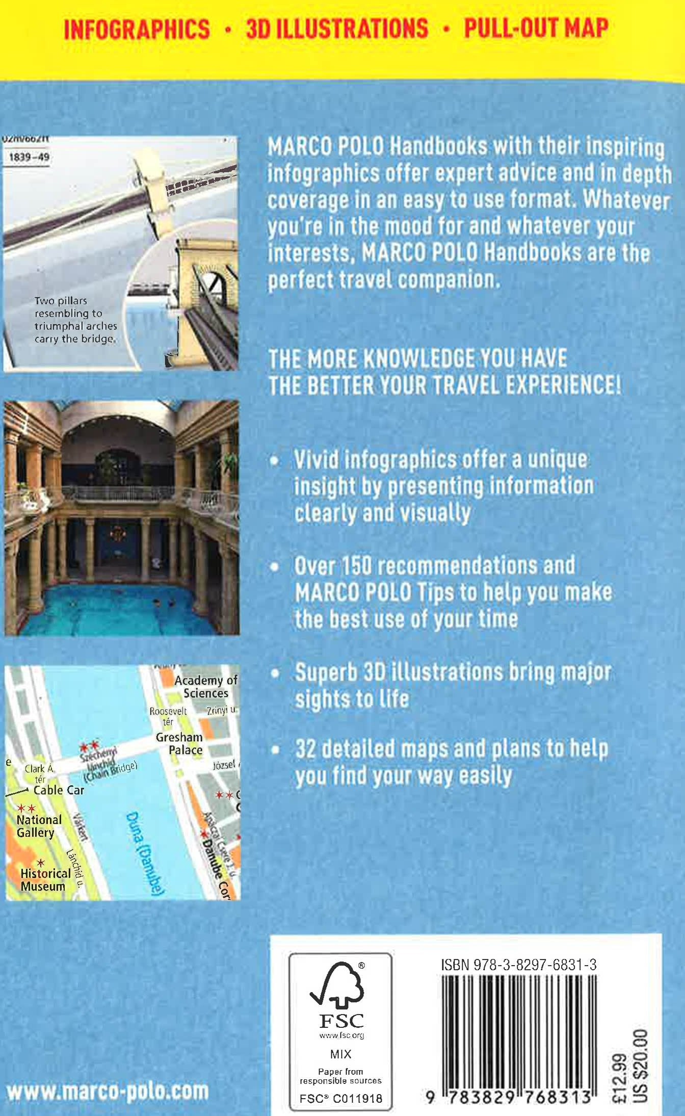 For advice you can trust, look no further than Marco Polo. The Budapest Marco Polo Handbook offers expert advice and is aimed at travellers looking for in-depth coverage of a destination - from detailed cultural information to Insider Tips - in an easy to use format. Whatever your mood or interests, Marco Polo Handbooks are the perfect travel companion. Welcome to Budapest! The Marco Polo Handbook to Budapest accompanies you to elegant coffee houses and through cultural splendours, leads you to famous spa baths and along the trail of art nouveau, and shows you some magnificent views of this city on the Danube. Discover & Understand: Our innovative infographics condense large amounts of data into a format which is easy to understand. Infographics include: why gulyas isn't quite the same thing as goulash, and the technical marvel of the Chain Bridge. Unique 3D images provide vivid insights into the Matthias Church and the Parliament Building. Tours: Specially created tours explore Budapest on foot, by bicycle, car or public transport. For example an exciting city walk across the Chain Bridge to the Castle Quarter, up the Gellert Hill and to Heroes Square. All suggested tours are plotted on detailed maps and combine the best and most interesting places to see, with tips for exciting stops along the way. Experience & Enjoy: All the things which make a trip unforgettable: from eating and drinking, shopping, sightseeing, museums & galleries, staying the night, travelling with children, festivals and going out in the evening. What's the best way to explore Budapest? Where are the best places for shopping? What is there to do with children? Answers to these and many other questions can be found in this chapter. In depth knowledge: Knowledge is king and Marco Polo Handbooks are packed full of information to help you get the best out of your trip. Insider Tips and special Marco Polo insights reveal hidden gems and well-kept secrets. Large pull-out map: Includes a separate pull-out map handily placed in a high quality plastic wallet at the back of the book, which can also be used as a storage pocket.