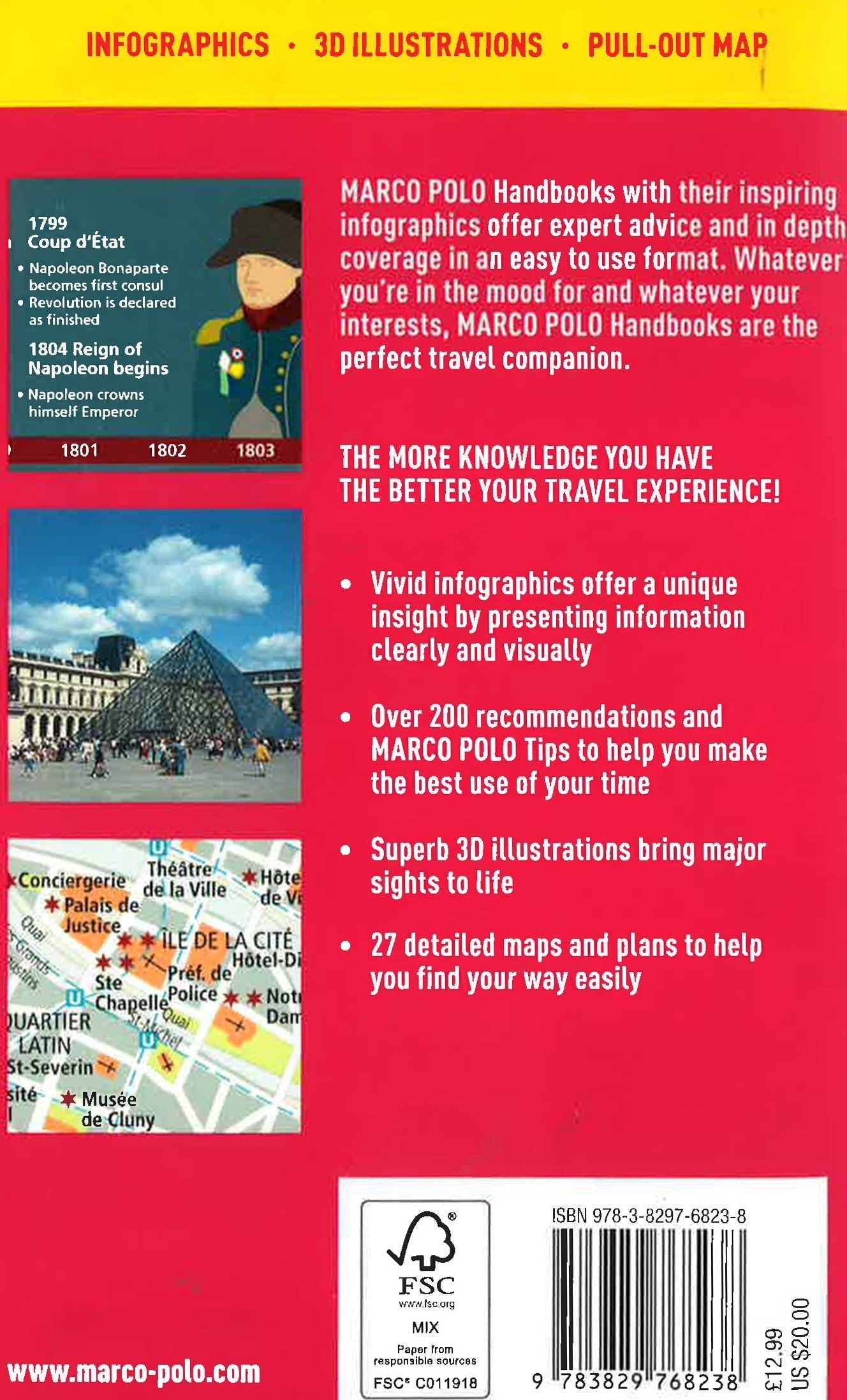 For advice you can trust, look no further than Marco Polo. The Paris Marco Polo Handbook offers expert advice and is aimed at travellers looking for in-depth coverage of a destination - from detailed cultural information to Insider Tips - in an easy to use format. Whatever your mood or interests, Marco Polo Handbooks are the perfect travel companion. Inside the Paris Marco Polo Travel Handbook: Belle de la Seine: Let Marco Polo lead you through the imposing buildings, world-renowned museums, exclusive shopping arcades and restaurants with flair, in short: through A Moveable Feast". Discover & Understand: Our innovative infographics condense large amounts of data into a format which is easy to understand. In the mood for: Fun suggestions help you to experience the variety of Paris - whatever your personal preferences and interests. Unique 3D images provide vivid insights into Notre-Dame Cathedral, the Pantheon and the Palace of Versailles. Tours: Discover Paris on foot - it's worth allowing time for the five suggested walks. Through Royal Paris you'll encounter many highlights of the Metropolis on the Seine, the left bank is the traditional meeting place for intellectuals; another walk leads you to trendy spots and fine department stores; and history lovers can follow in the footsteps of the French Revolution. All suggested tours are plotted on detailed maps and combine the best and most interesting places to see, with tips for exciting stops along the way. Experience & Enjoy: All the things which make a trip unforgettable: from eating and drinking, shopping, sightseeing, museums & galleries, staying the night, travelling with children, festivals and going out in the evening. What are the city's best dishes and where can you sample them? What is there to do with children? Answers to these and many other questions can be found in this chapter. In depth knowledge: Knowledge is king and Marco Polo Handbooks are packed full of information to help you get the best out of your trip. Insider Tips and special Marco Polo insights reveal hidden gems and well-kept secrets, for example - where to see and be seen, how to discover authentic Paris for free, where to find the city's best ice cream and where the secrets of perfumery are revealed. Large pull-out map: Includes a separate pull-out map handily placed in a high quality plastic wallet at the back of the book, which can also be used as a storage pocket.