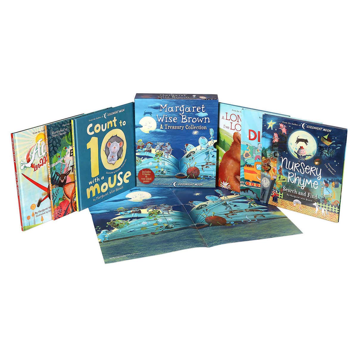 From the recently discovered archives of Margaret Wise Brown, author of the children's classics Goodnight Moon and The Runaway Bunny, comes a beautiful treasury collection of imaginative stories and vibrant illustrations. Titles include: A Long Time That I've Loved You Nursery Rhyme Search and Find The Diggers Count to 10 with a Mouse Away in My Airplane Be Brave, Little Tiger