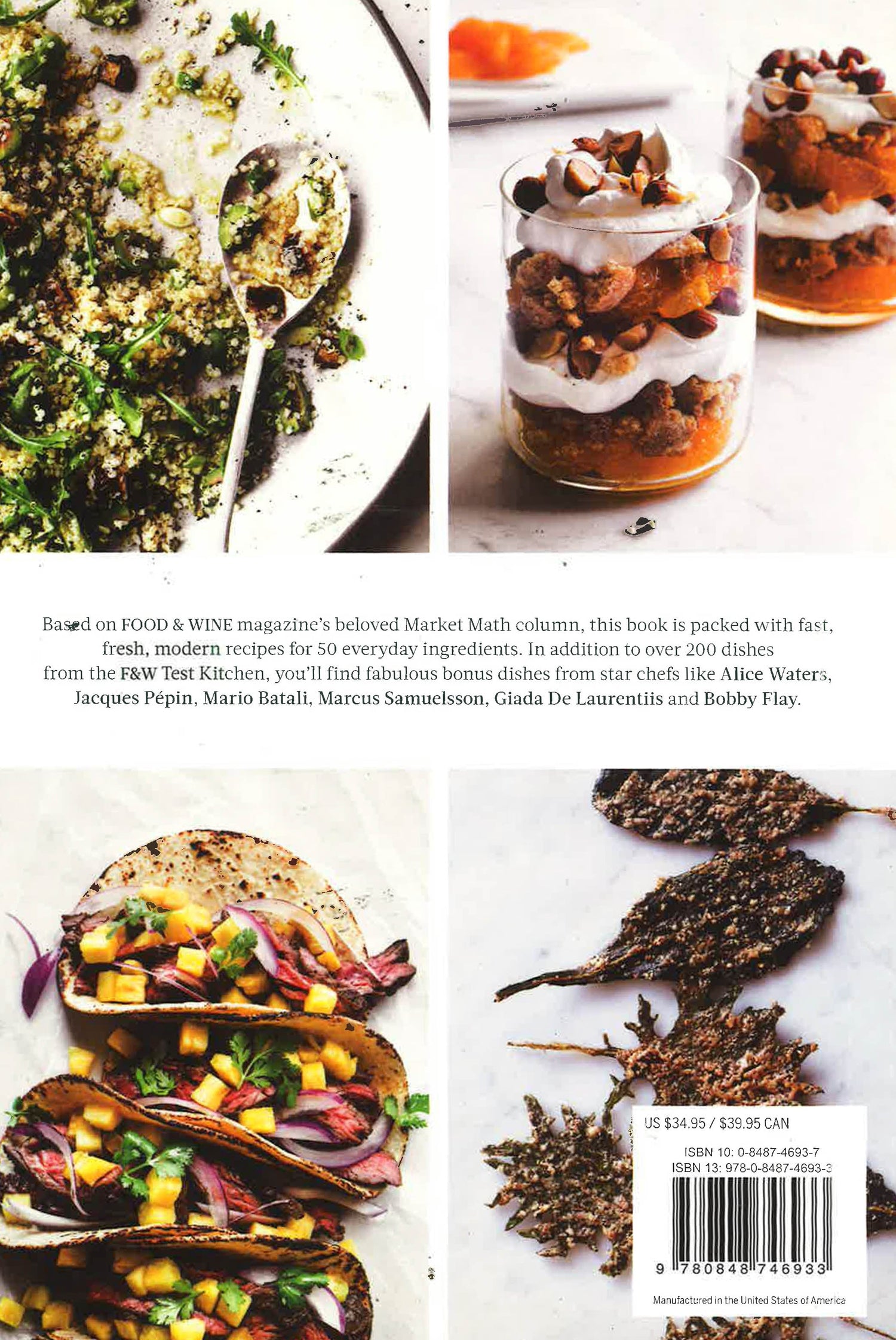Based on FOOD & WINE's popular monthly column, Market Math starts with 50 everyday ingredients and transforms them into 200 fast, fresh, and delicious weeknight meals.This user-friendly guide is alphabetically organized by ingredient, each accompanied by four to six recipes that showcase its versatility and flavor. These are dishes you'll want to add to your weeknight repertoire: quick, crowd-pleasing dinners that make the most of farmer's markets and local foods stores.Discover new ways to use fresh produce, hearty grains, meat, seafood, and dairy. Transform broccoli into a creamy soup or pair it with kale for a refreshing salad. Canned tuna becomes a lemony dip or the basis for banh mi sandwiches. Standards like pasta, peppers, rice, and spinach get a makeover with inspired flavor combinations and genius techniques. The recipe collection features contributions from FOOD & WINE's favorite culinary stars, including Mario Batali, Giada De Laurentiis, and Bobby Flay. Each recipe has been tested and perfected by FOOD & WINE experts, ensuring success whether you're a novice or seasoned home cook.Brimming with inspiration and illustrated with lush color photos, Market Math is a kitchen shelf essential for every home cook.