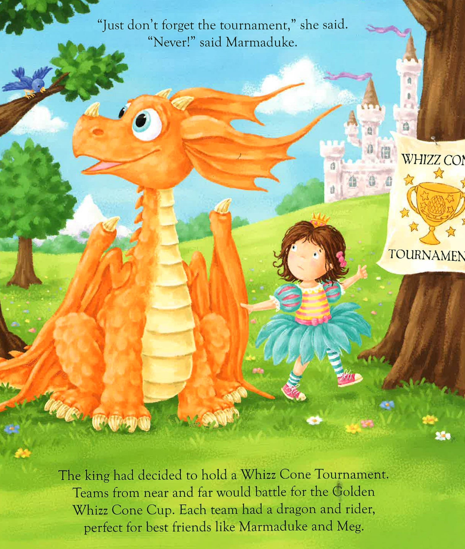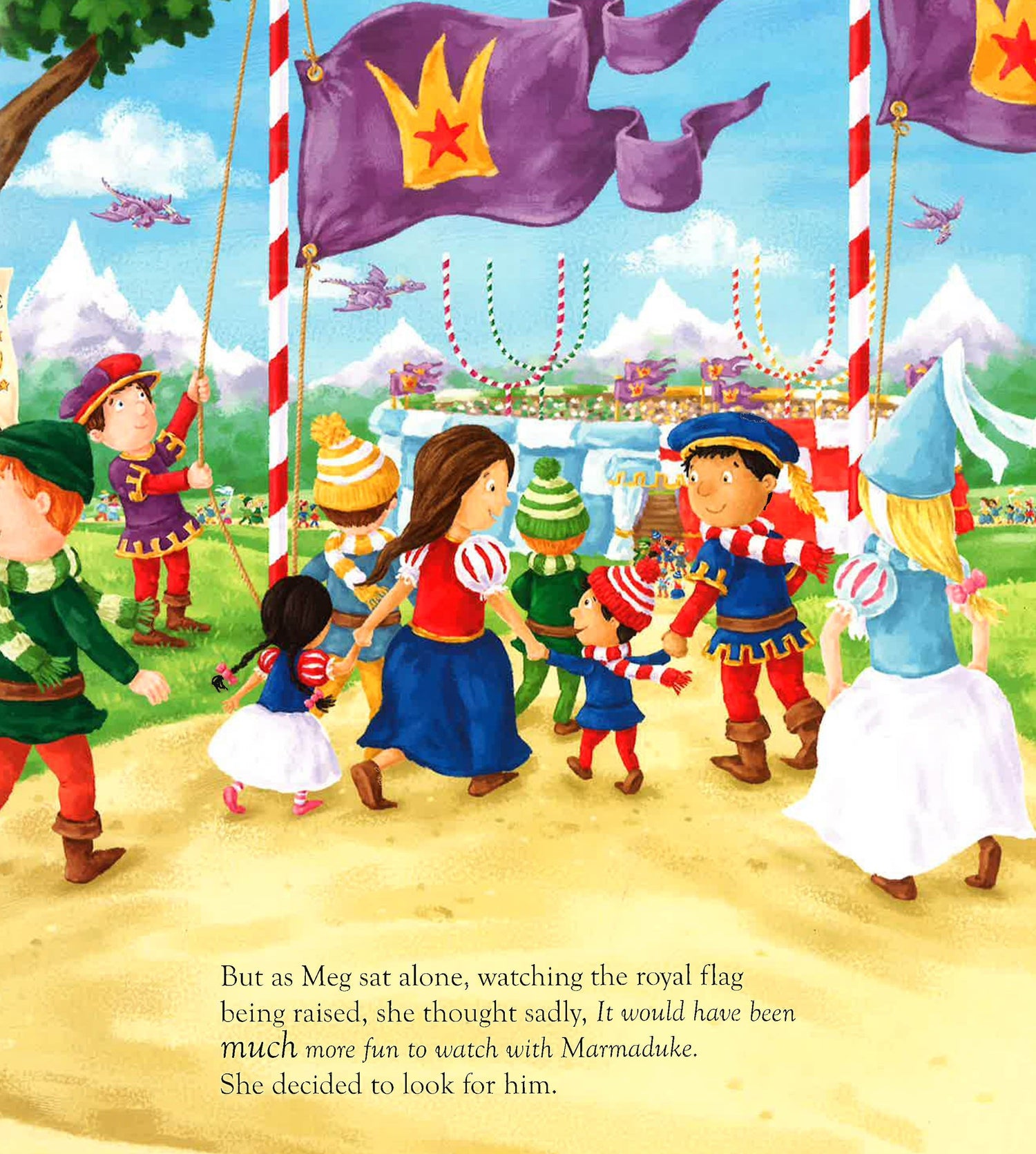 As word of Marmaduke and Meg spreads across the kingdom, things slowly start to change - princesses, dragons, princes and knights all want to make friends with Marmaduke and Meg, and be different with them. After a while, Marmaduke and Meg are ... popular. Maybe even too popular. Because Marmaduke is so popular that he doesn't seem to have any time for Meg. And Meg starts to feel a little bit left out.
