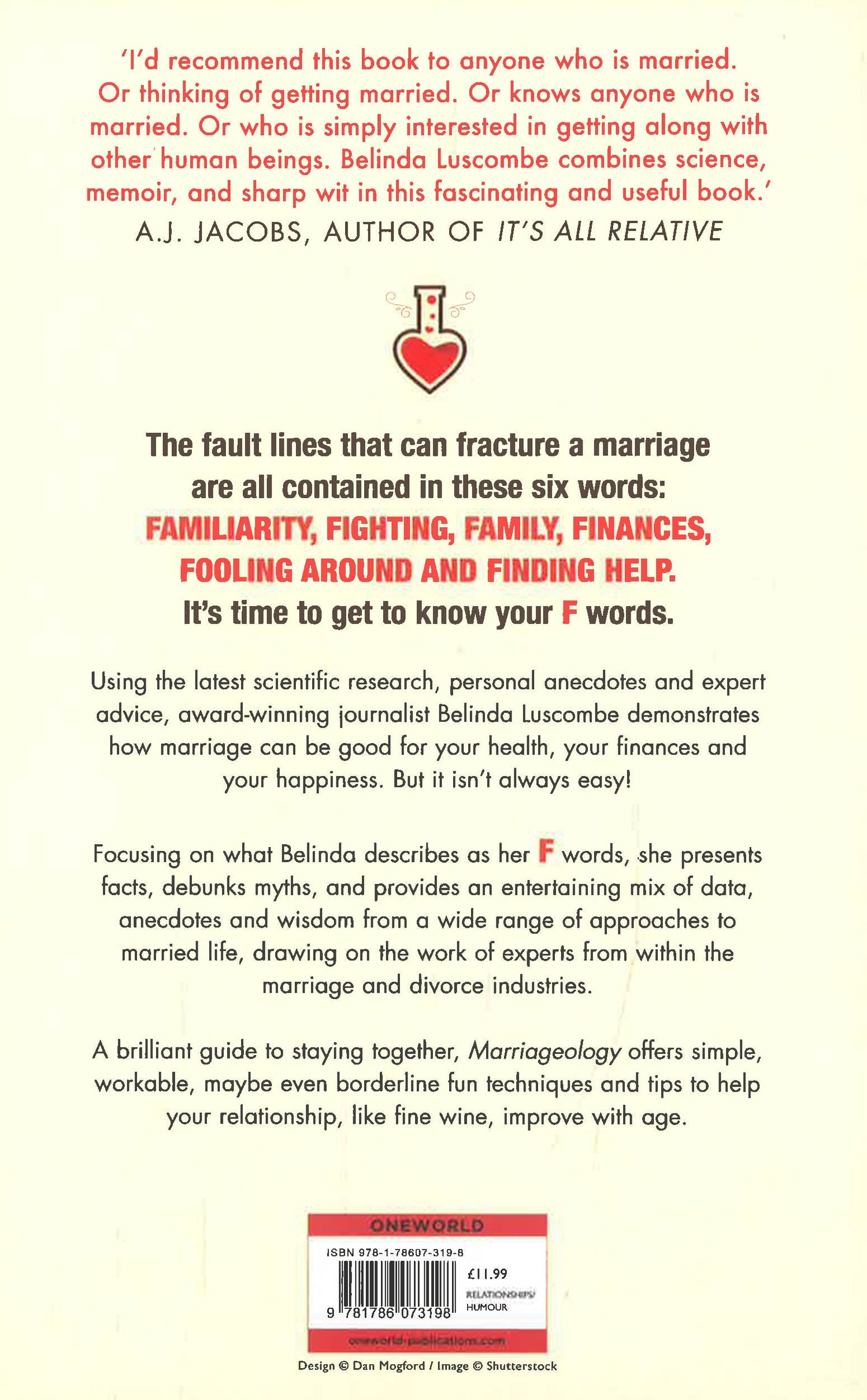 Focusing on what Belinda describes as her F words, she presents facts, debunks myths, and provides an entertaining mix of data, anecdotes and wisdom from a wide range of approaches to married life, drawing on the work of experts from within the marriage and divorce industries. A brilliant guide to staying together, Marriageology offers helpful advice and gives readers something to think about whether your marriage is on the brink of collapse or just needs a bit of maintenance.