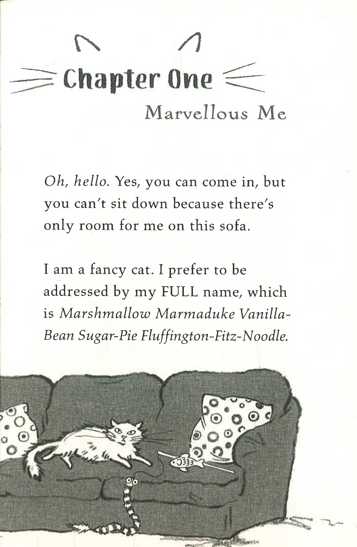 Marshmallow Marmaduke Vanilla-Bean Sugar-Pie Fluffington-Fitz-Noodle is a big, fluffy (and grumpy) cat. He LOVES the easy life: lazing in the sunshine, eating Shrimp Crunchies and annoying Buster, the dog downstairs.