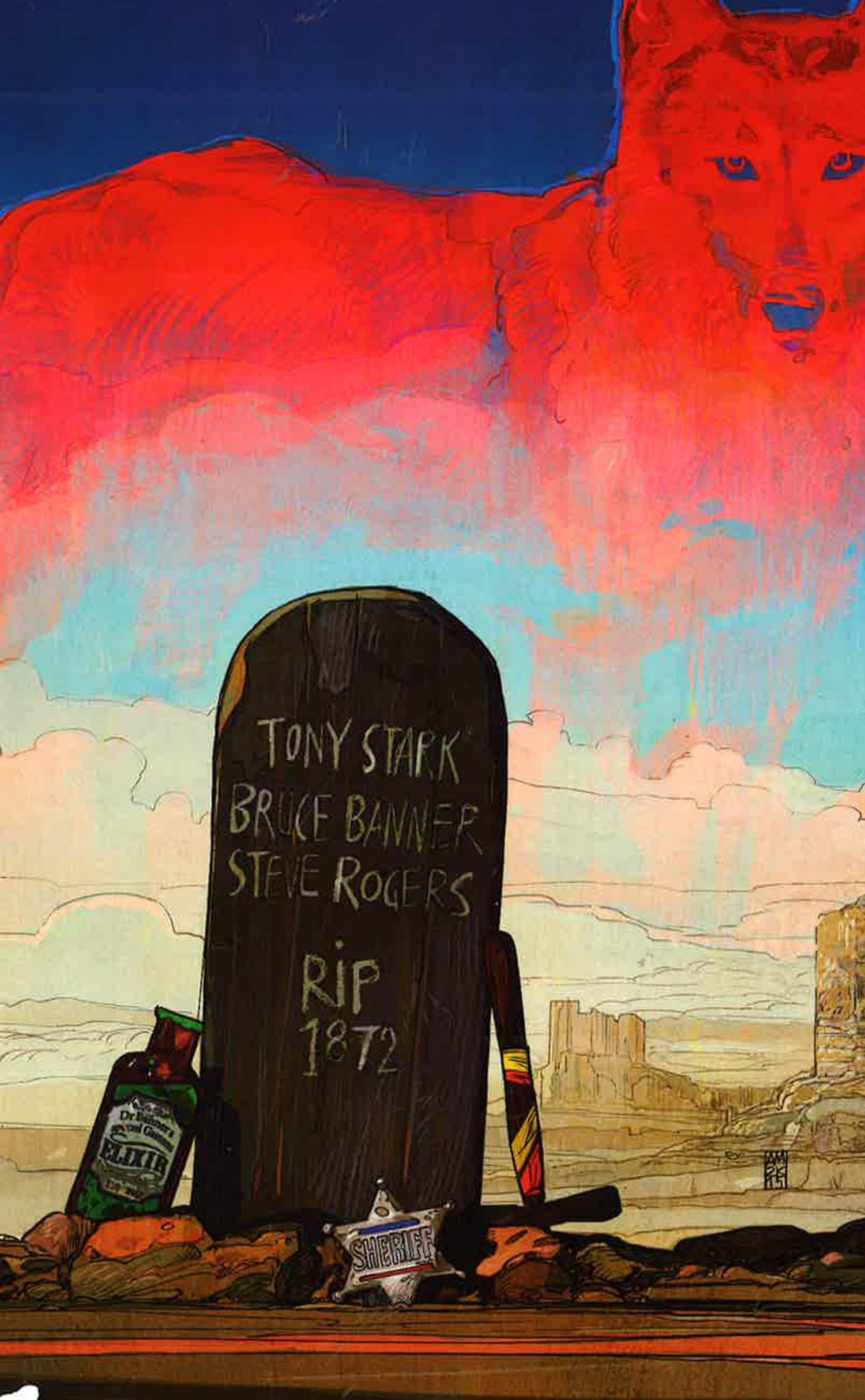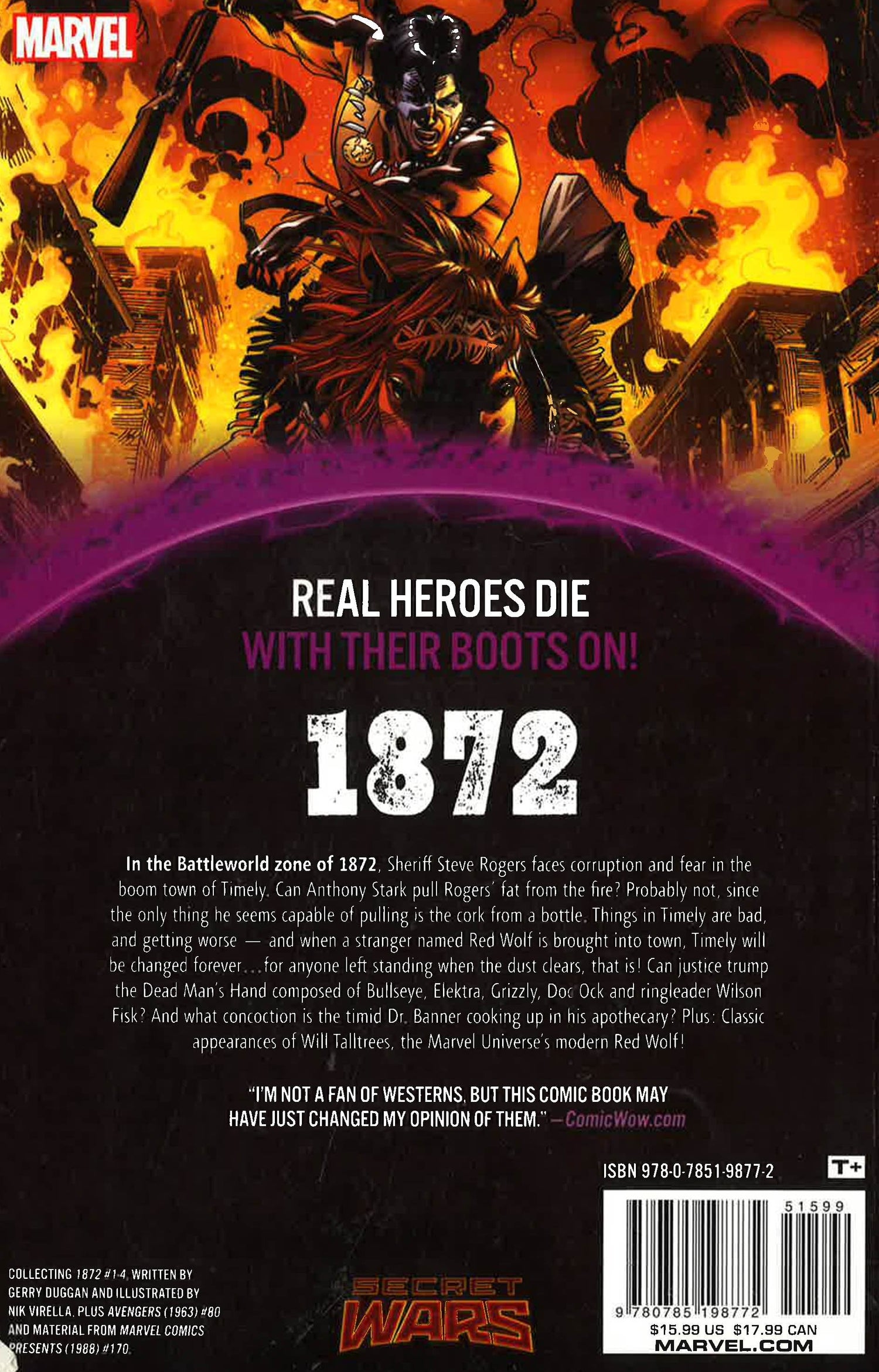 REAL HEROES DIE WITH THEIR BOOTS ON. Sheriff Steve Rogers faces corruption and fear in the boom town of Timely. The only thing Anthony Stark seems capable of is pulling a cork, so can he pull Rogers' fat from the fi re? But...a stranger comes to town that will change Timely forever... for anyone left standing, that is.