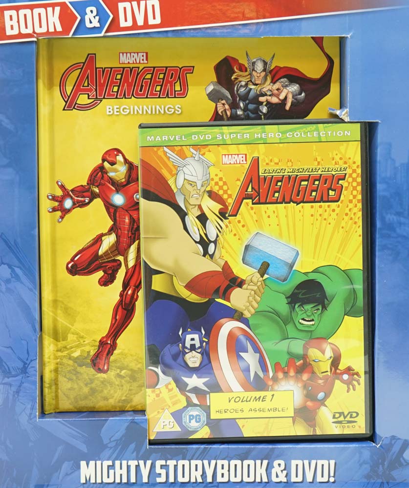 Read, watch, enjoy! Join Earth's Mightiest Heroes on an epic mission to save the world in this action-packed Book and DVD set. Learn how the Avengers became an unstoppable super-hero team in your Beginnings storybook. Then get ready for a Marvel marathon with the first six episodes from season one of the Avengers animated series! Perfect for children who love Marvel's Avengers!