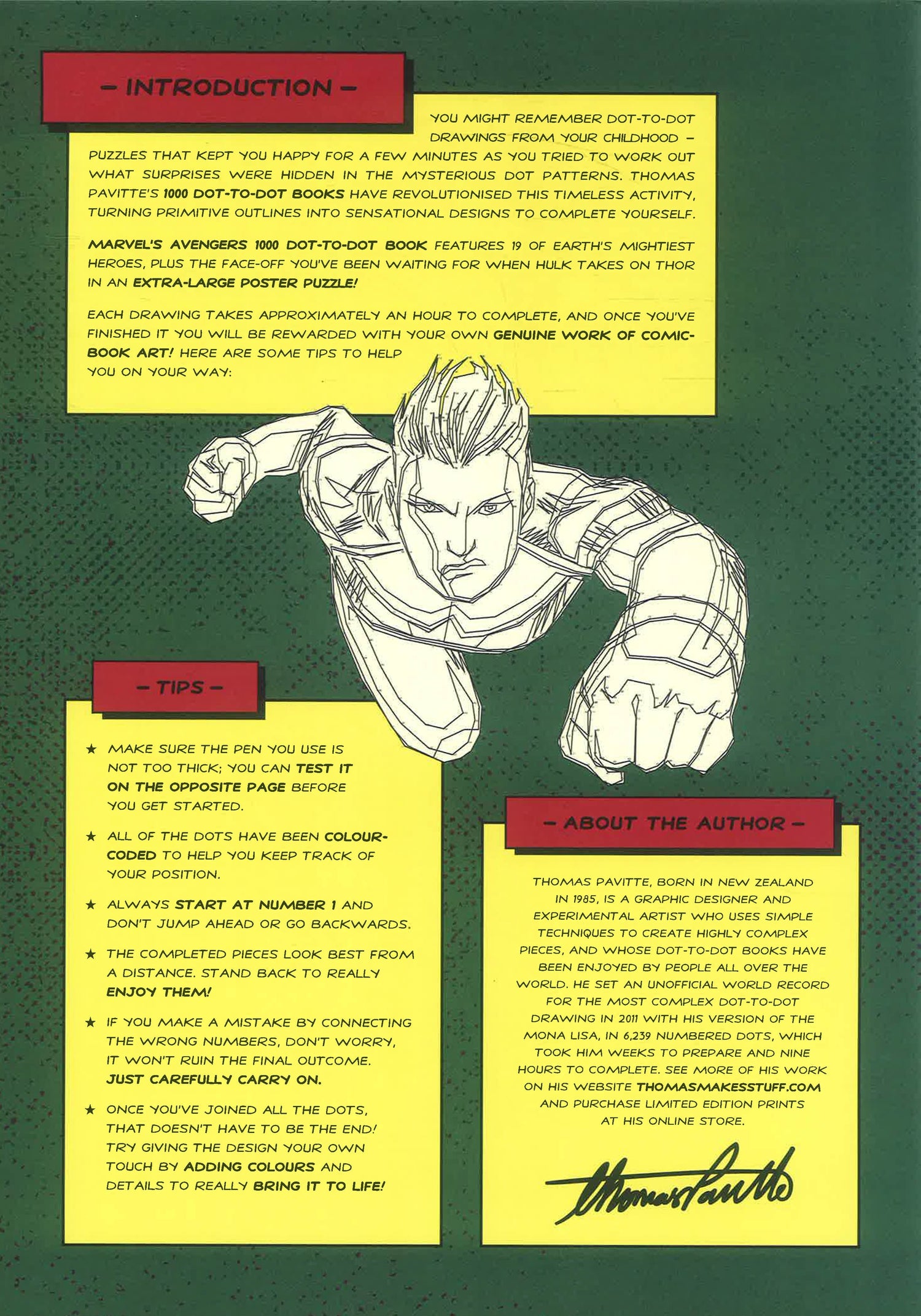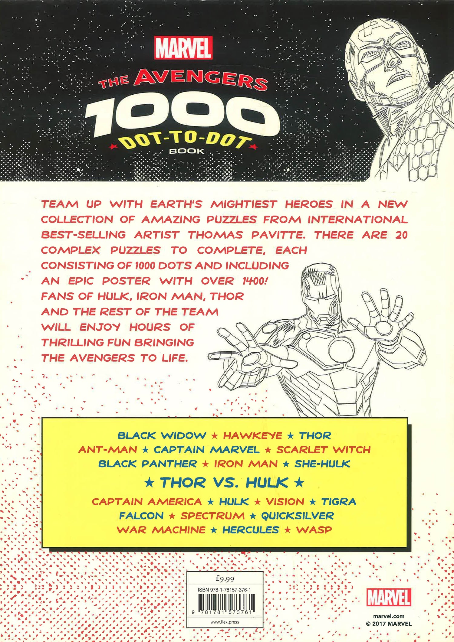 Join the greatest heroes in the universe with this super puzzle book from best-selling dot-to-dot artist Thomas Pavitte. With 20 complex puzzles to complete, all based on Marvel's finest comic art from The Avengers, you'll have hours of fun bringing the superheroes to life. Colour your completed puzzle, frame it on your wall. . . there are a host of ways to complete Marvel's Avengers 1000 Dot-to-Dot Book. Includes puzzles of Captain America, Iron Man, Black Widow, Thor, and many, many more!Author BiographyWhen graphic designer Thomas Pavitte found himself between jobs, he started doodling to keep his creative juices flowing, experimenting with the dot-to-dot puzzles he remembered from his childhood. The result was a 6,239-dot reconstruction of the Mona Lisa, which then led to the 1000 Dot-to-Dot Book and its sequels. Constantly exploring new graphic ideas, Thomas lives in Melbourne, Australia, and shares his work at thomasmakesstuff. com. - Marvel's Avengers 1000 Dot-To-Dot Book By Thomas Pavitte (Paperback)