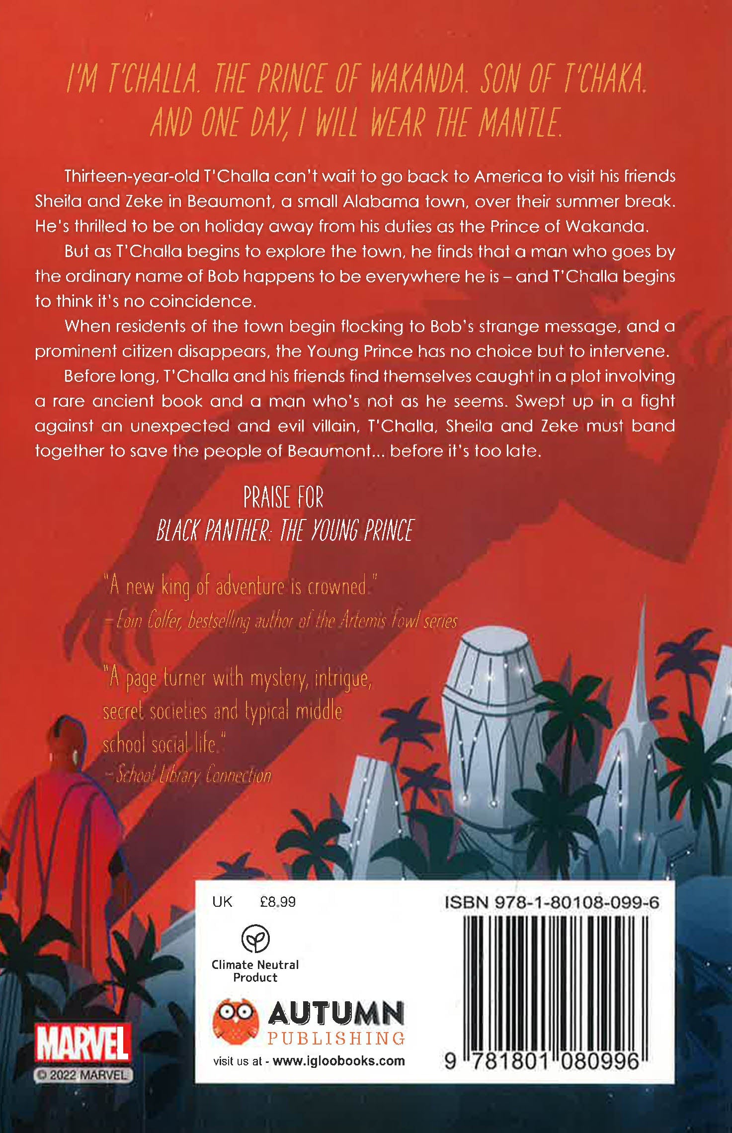 But as T'Challa begins to explore the town, he finds that a man who goes by the ordinary name of Bob happens to be everywhere he is - and T'Challa begins to think it's no coincidence. When residents of the town begin flocking to Bob's strange message, and a prominent citizen disappears, the Young Prince has no choice but to intervene. Before long, T'Challa and his friends find themselves caught in a plot involving a rare ancient book and a man who's not as he seems. Swept up in a fight against an unexpected and evil villain, T'Challa, Sheila and Zeke must band together to save the people of Beaumont... before it's too late.