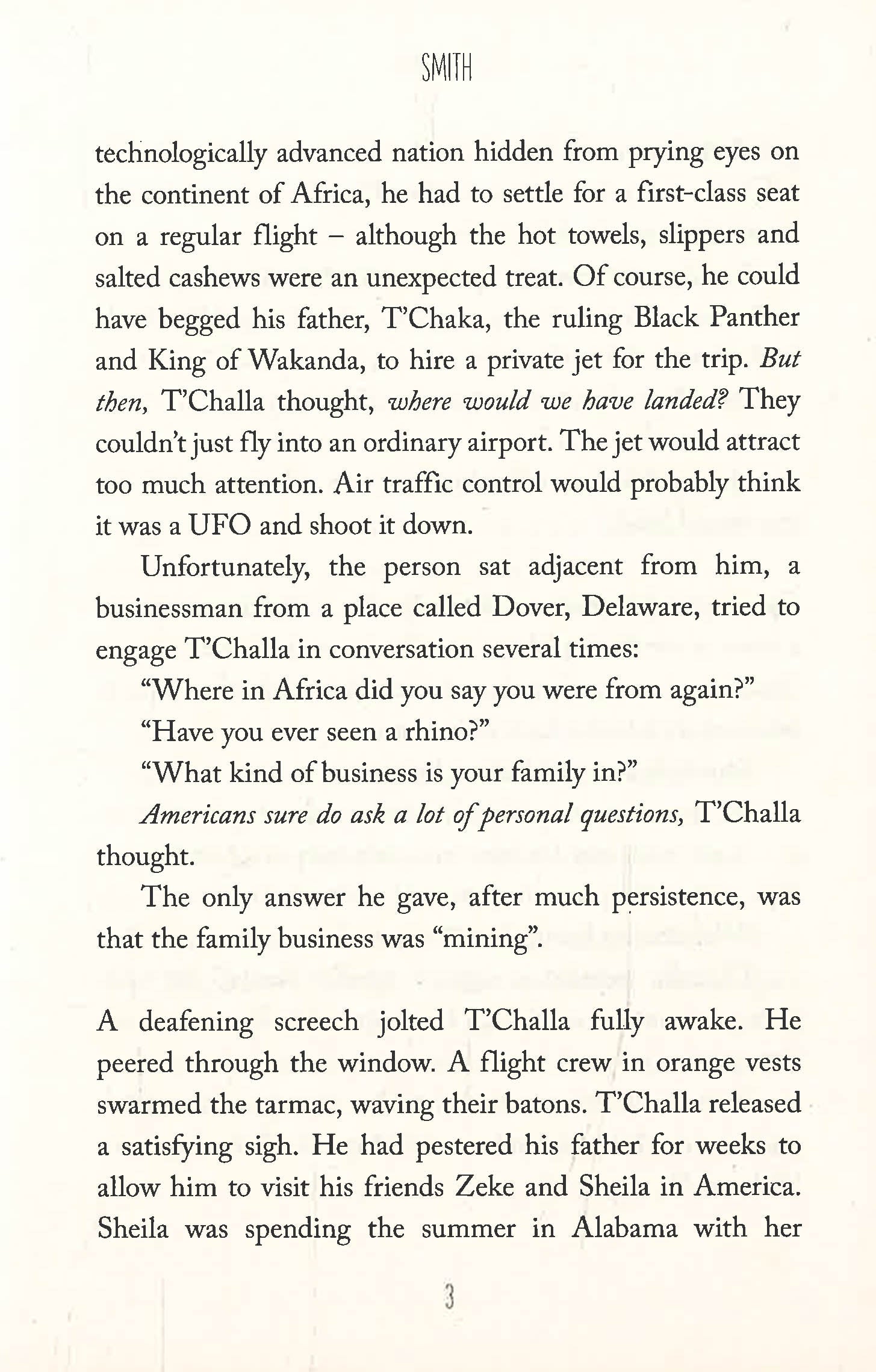 Thirteen-year-old T'Challa can't wait to go back to America to visit his friends Sheila and Zeke in Beaumont, a small Alabama town, over their summer break. He's thrilled to be on holiday away from his duties as the Prince of Wakanda.