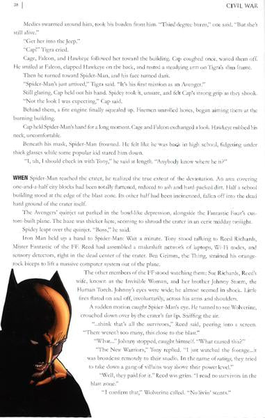 The Marvel Universe is changing. In the wake of a tragedy, Capitol Hill proposes the Super Hero Registration Act, requiring all costumed heroes to unmask themselves before the government. Divided, the nation's greatest champions must each decide how to react - a decision that will alter the course of their lives forever! Experience Marvel's blockbuster event like never before in this illustrated prose adaptation of the smash-hit graphic novel that has sold more than half a million copies in print and digital formats!