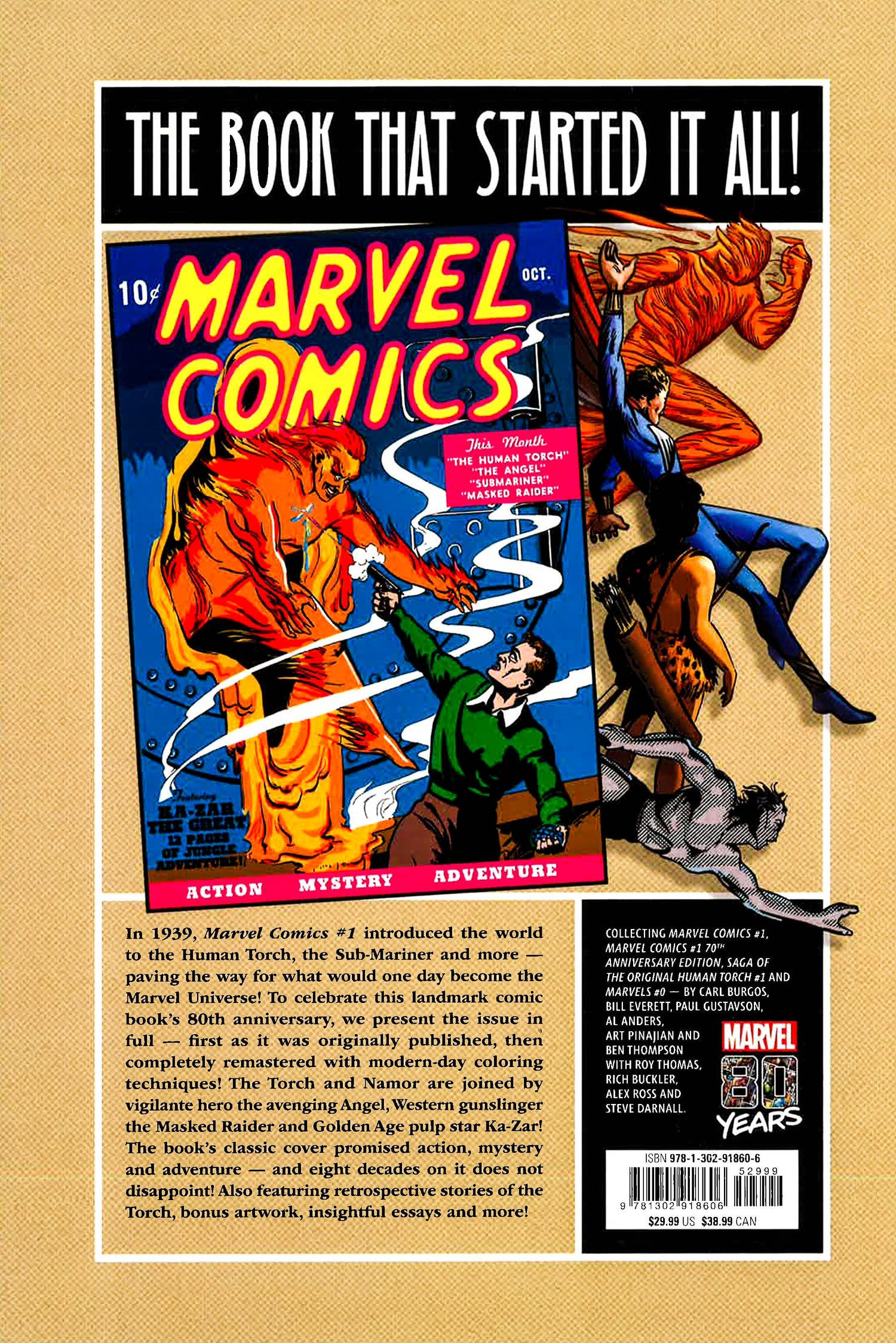 The book that kicked off the Marvel Universe back in 1939, presented better than ever in glorious hardcover - together with an extensive array of special features! Marvel Comics 1 promised action, mystery and adventure, and it delivered! The issue's cover star, the original android Human Torch, blazed his way into readers' hearts - and Namor the Sub-Mariner made a big splash! As well as the dazzling debuts of these two Golden Age heroes, pulp star Ka-Zar swung into comics, and costumed detective the Angel made his debut! Plus Western adventures with the Masked Raider - and terror in the jungle! And from this one issue, published 80 years ago, grew the entire Marvel Universe! Now, Marvel Comics 1 is collected along with bonus artwork, insightful essays, a gallery of homages to its iconic cover, and much more!