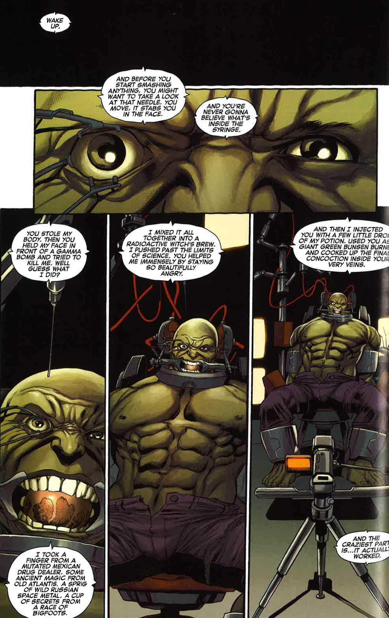 It's the strangest, smashing-est Hulk yet! The green goliath discovers that to remain himself - and prevent the diabolical Dr. Banner from re-emerging - he must STAY ANGRY! The Hulk picks fights against drug cartels, sea monsters, Russian super-soldiers and a lost city of Sasquatches - oh, and the Punisher, Kraven the Hunter, Wolverine and the Thing! But when Banner's devious master plan is revealed, and Dr. Doom returns, it's a monumental day of reckoning for both Hulk and Banner! Hulk wants a piece of Doom, Banner plays an endgame of his own, and it all leads to an explosive conclusion!