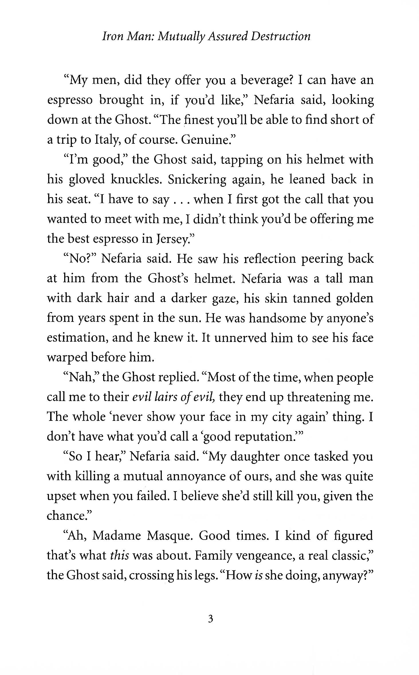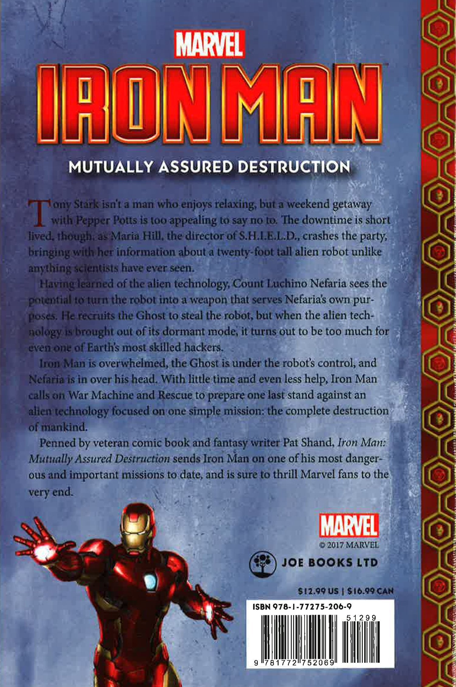Tony Stark isn't a man who enjoys relaxing, but a weekend getaway with Pepper Potts is too appealing to say no to. The downtime is short lived, though, as Maria Hill, the director of S.H.I.E.L.D, crashes the party, bringing with her information about a twenty-foot tall alien robot unlike anything scientists have ever seen. Having learned of the alien technology, Count Luchino Nefaria sees the potential to turn the robot into a weapon that serves Nefaria's own purposes. He recruits the Ghost to steal the robot, but when the alien technology is brought out of its dormant mode, it turns out to be too much for even one of Earth's most skilled hackers. Iron Man is overwhelmed, the Ghost is under the robot's control, and Nefaria is in over his head. With little time and even less help, Iron Man calls on War Machine and Rescue to prepare one last stand against an alien technology focused on one simple mission: the complete destruction of mankind. Penned by veteran comic book and fantasy writer Pat Shand, Iron Man: Mutually Assured Destruction sends Iron Man on one of his most dangerous and important missions to date, and is sure to thrill Marvel fans to the very end.