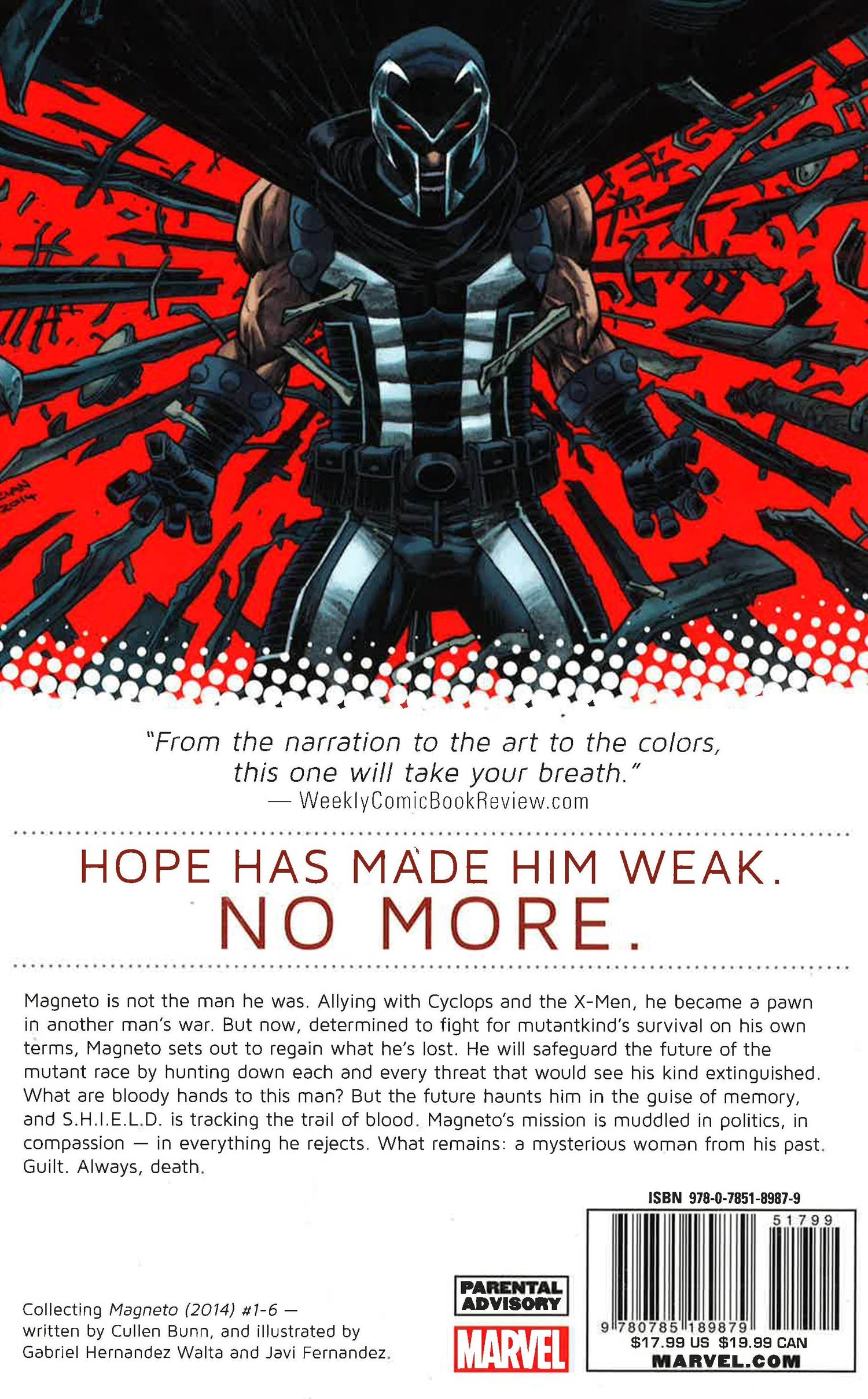 Once most feared mutant mastermind on the planet, Magneto is no longer the man he was. After allying with Cyclops and the X-Men, he became a pawn. Determined to fight for mutantkind's survival on his own terms, Magneto sets out to regain what he's lost. Magneto will safeguard the future of the mutant race by hunting down each and every threat that would see his kind extinguished and bloody his hands that they may never be a threat again. But as horrors from his past loom large and S.H.I.E.L.D. agents pursue him, will Magneto become the villain he once was?