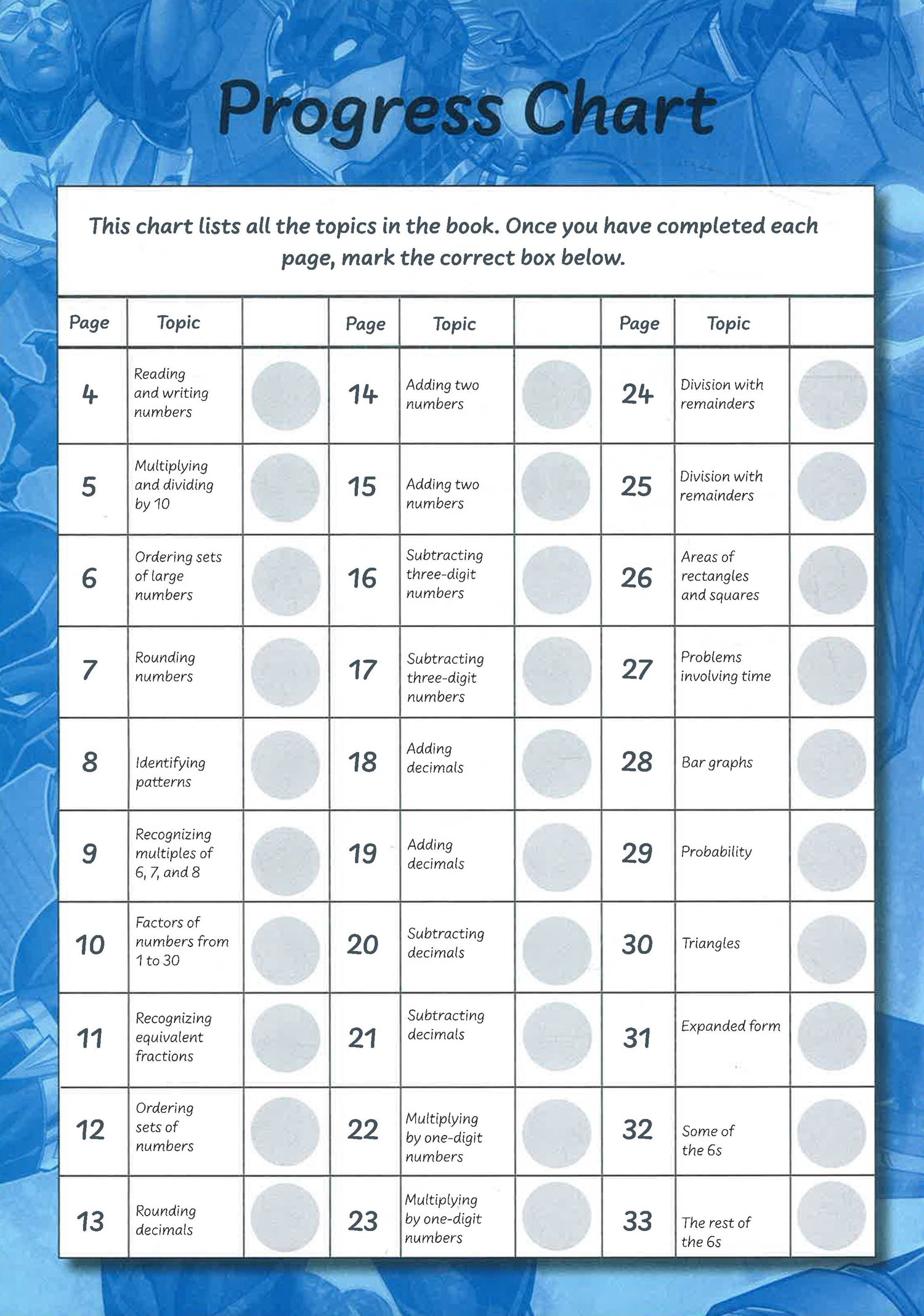 Marvel Math Made Easy also includes a handy progress chart, allowing both parent and child to track and celebrate their learning achievements. Answers and notes help parents with marking and giving constructive feedback.