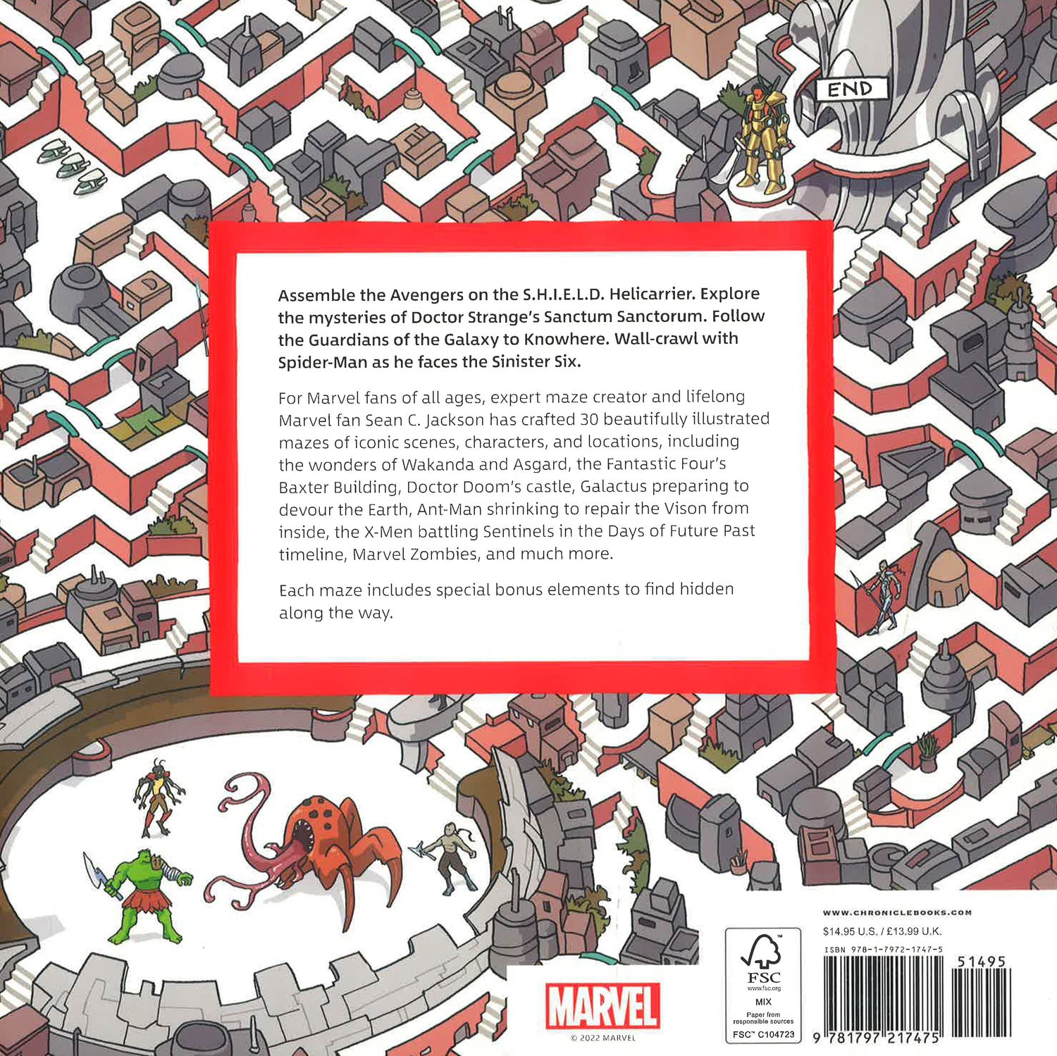 Explore exciting iconic locations and scenes with your favorite comics characters in this interactive, all-ages book of mighty Marvel mazes. Accomplish missions and locate key objects along the way while discovering the mysteries of Doctor Strange's Sanctum Sanctorum, the S.H.I.E.L.D. Helicarrier, Wakanda, Asgard, and Doctor Doom's Castle. Follow the Guardians of the Galaxy to Knowhere, help the Avengers fight the Skrulls aboard their flagship, face fearsome Sentinels with the X-Men in Days of Future Past timeline, and more! Brought to life by expert maze creator Sean C. Jackson, each full-color maze is a playful visual delight for Marvel fans everywhere.