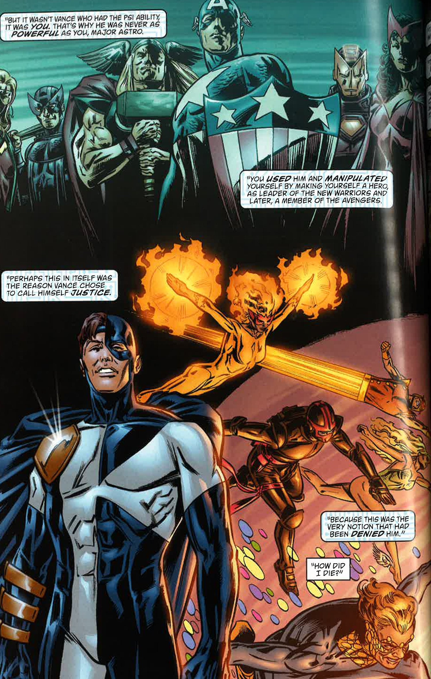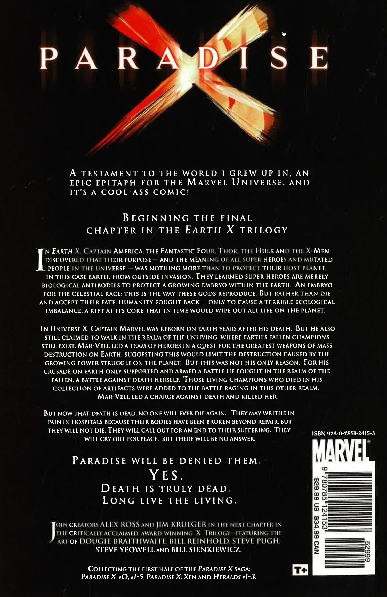 In Universe X, Captain Marvel led a charge against Death and killed her. But now Death is dead, no one will ever die again. Those in pain may call out for an end to their suffering but there will be no answer and paradise will be denied them. Death is truly dead. Long live the living.
