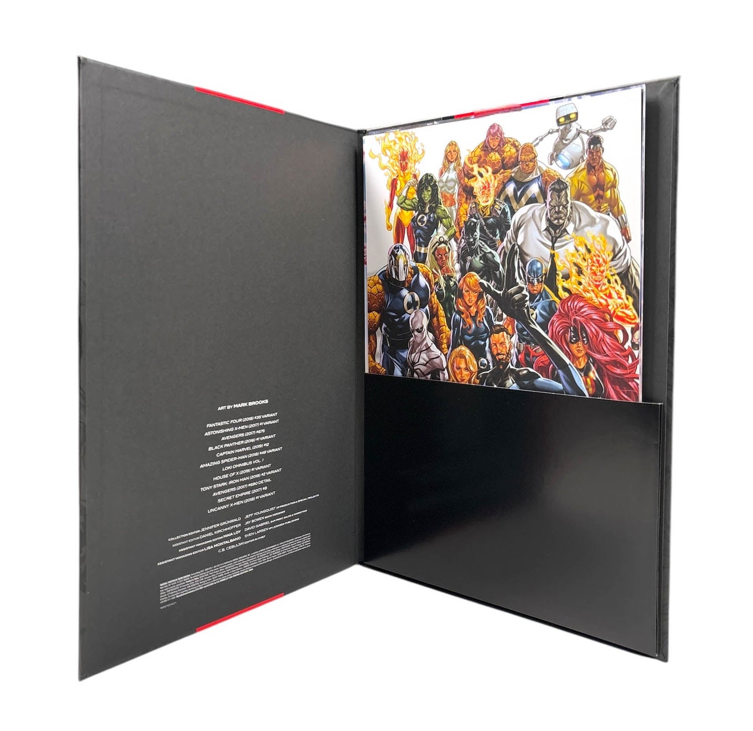 Superstar artist Mark Brooks has thrilled True Believers for years with his detailed interiors, stunning covers and jaw-dropping promotional artwork for such major projects as HOUSE OF X. Brooks' instantly recognizable illustrations starring everyone from Spider-Man to the Avengers to the X-Men - sometimes in the same image - have earned him a reputation as one of the most talented creators in the industry. Now twelve of Brooks' most stunning pieces have been painstakingly selected and collected in a beautiful hardcover case, ready for you to frame at home. It's an instant collection of masterpieces from a modern maestro!