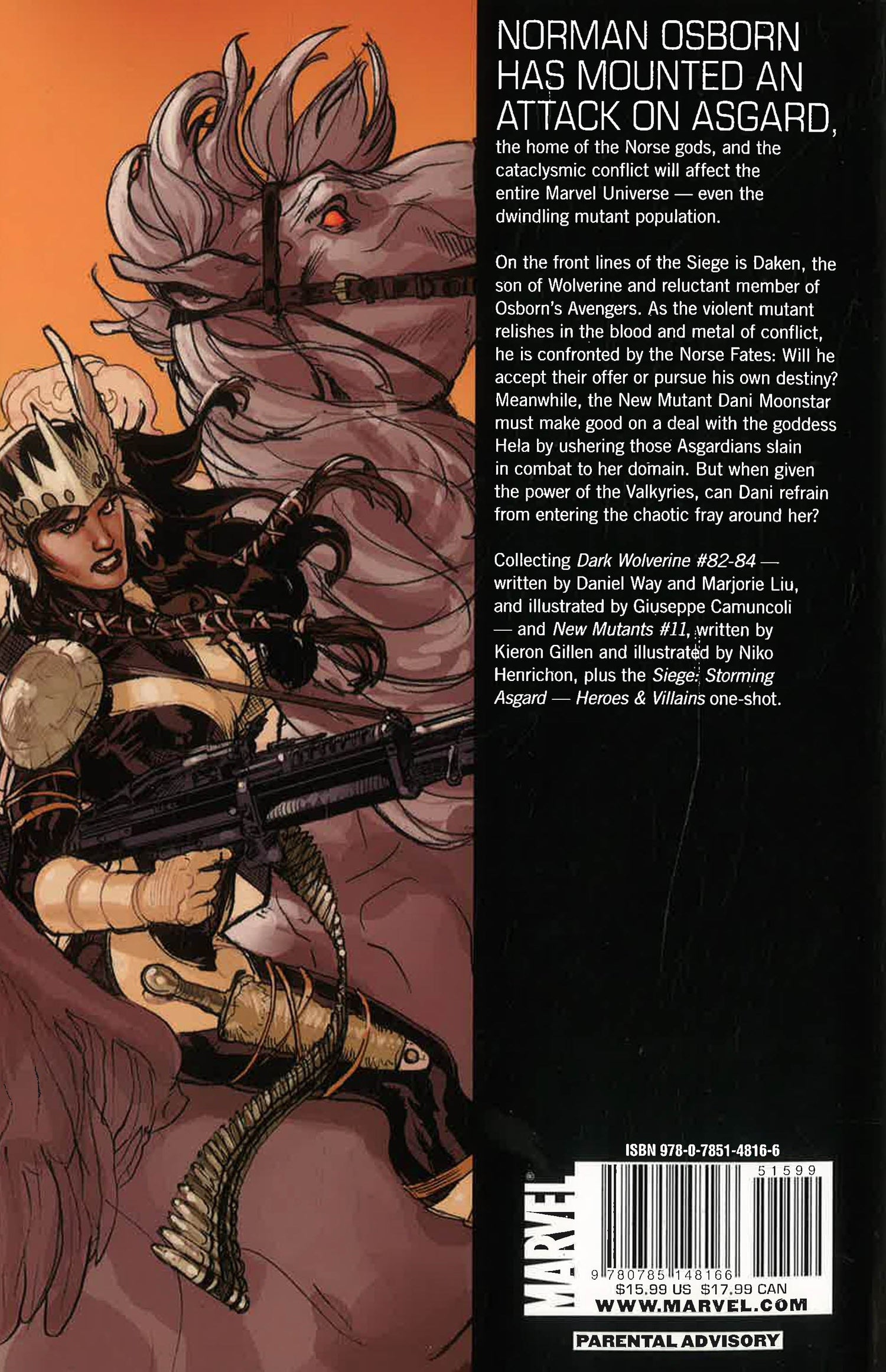 The end has come. While he is counted among the greatest villains the Marvel Universe has ever seen, one question remains: whose side is Daken really on? As part of the SIEGE on Asgard, what, or who, will he encounter in the land of the gods thatwill change him forever? And in New Mutants, with all the Asgardians falling in the Siege of Asgard, someone needs to deal with the dead. And who better to do so than a Valkyrie. But where is Dani Moonstar supposed to be bringing these dead?