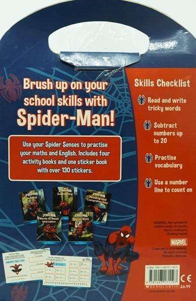 This back-to-school kit includes four activity books, each focusing on a different key skill - Adding, Subtracting, Reading & Comprehension and Words to Read and Learn - and one sticker book, all in a cardboard carry case featuring a spider-shaped cut-out window. The kit aims to encourage the imagination and fuel a young child's passion for learning. Other titles in the series: Frozen Back-to-School Kit.
