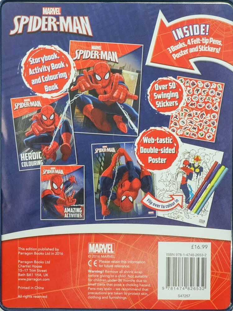Join Spider-Man for hours of colouring, sticker and activity fun in this awesome collectable tin!