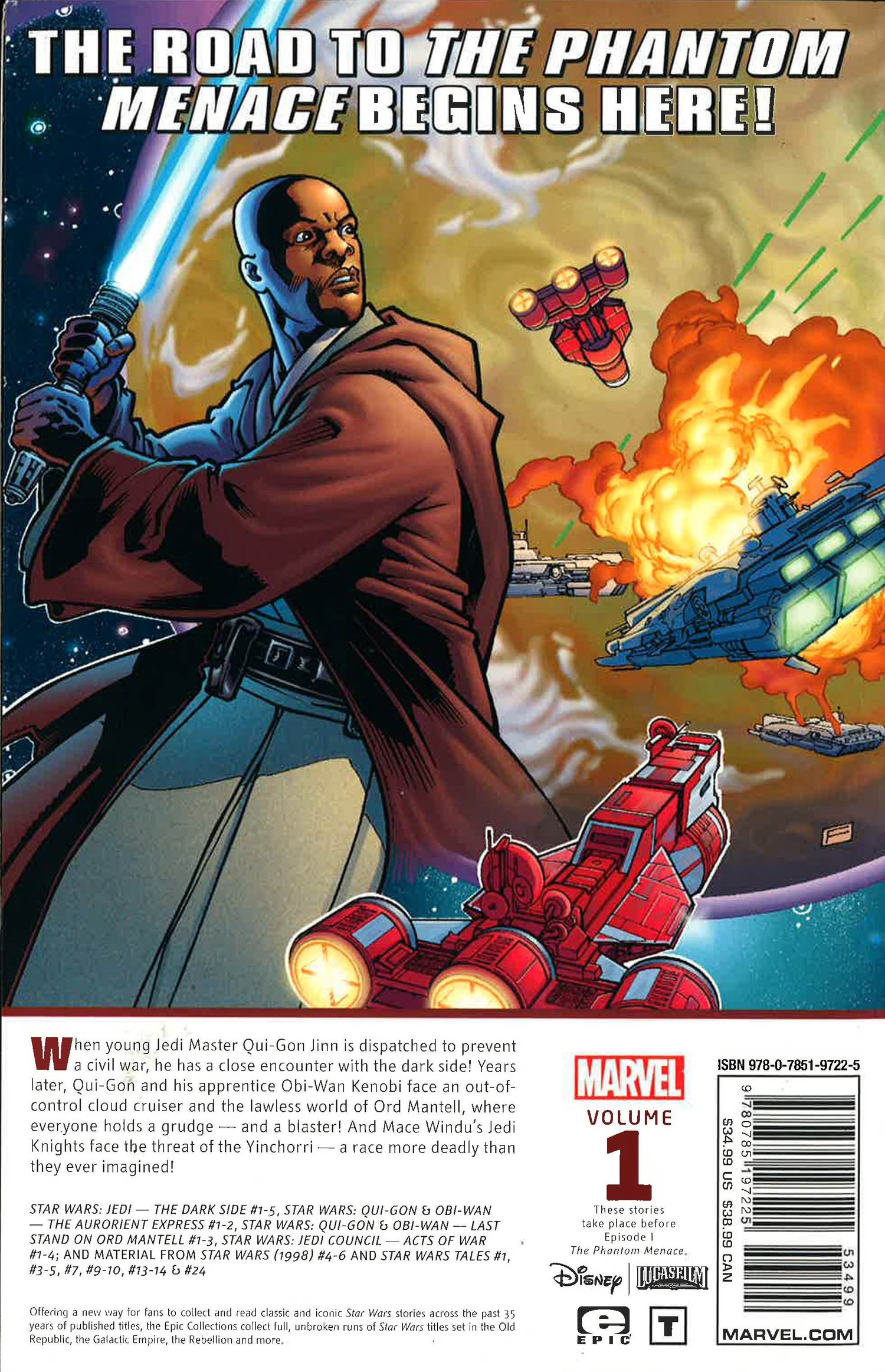 When young Jedi Master Qui-Gon Jinn is dispatched to prevent a civil war, he has a close encounter with the Dark Side! Years later, Qui-Gon and his apprentice Obi-Wan Kenobi face an out-of-control cloud cruiser and the lawless world of Ord Mantell, where everyone holds a grudge - and a blaster! And Mace Windu's Jedi Knights face the threat of the Yinchorri - a race more deadly than they ever imagined! COLLECTING: STAR WARS: JEDI - THE DARK SIDE 1-5, STAR WARS: QUI-GON & OBI-WAN - THE AURORIENT EXPRESS 1-2, STAR WARS: QUI-GON & OBI-WAN - LAST STAND ON ORD MANTELL 1-3, STAR WARS: JEDI COUNCIL - ACTS OF WAR 1-4, MATERIAL FROM STAR WARS (1998) 4-6; MATERIAL FROM STAR WARS TALES 1, 3-5, 7, 9-10, 13-14, 24